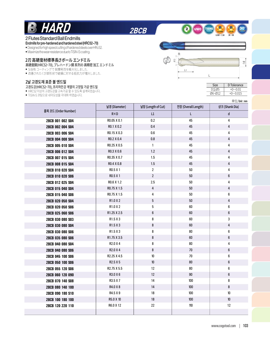 - - Endmills for pre-hardened and hardened steel (HRC50~62)