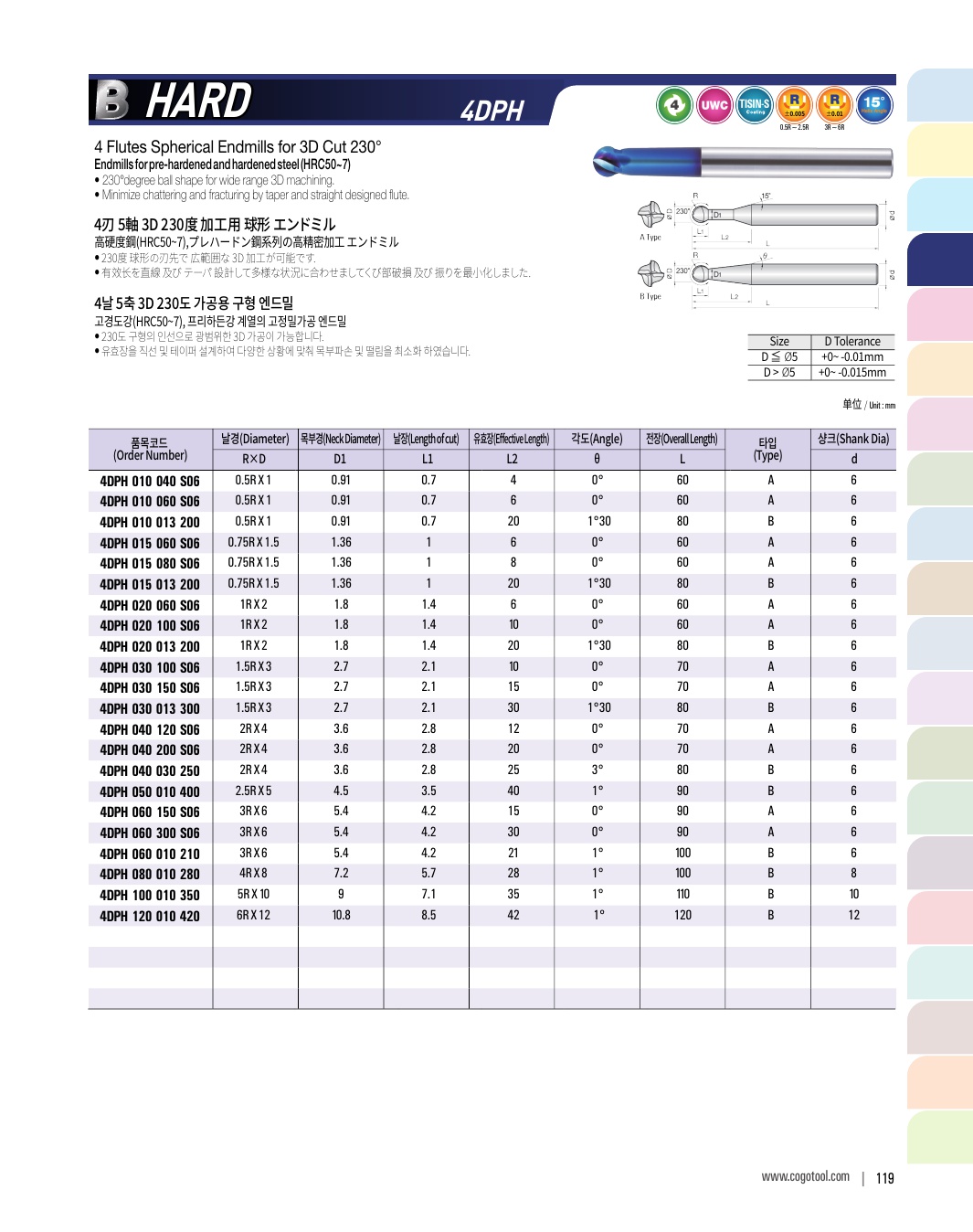 - - 인성과 내마모성이 우수한 초미립자 고급재질을 사용하여 공구의 수명을 향상하여 무인작업이 가능