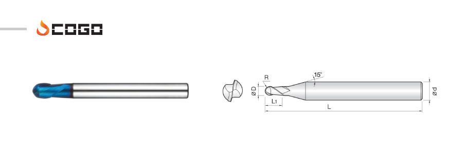 2 Flutes Spherical Endmills for 3D Cut 230°