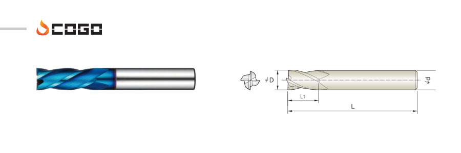 - - Long tool life with low cutting force by 45˚ helix design.