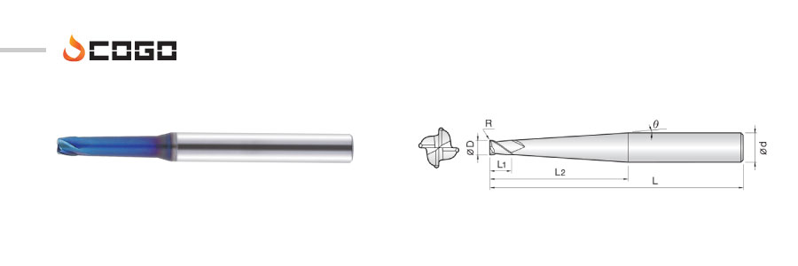 2 Flutes High Speed Taper Neck Ball Endmills