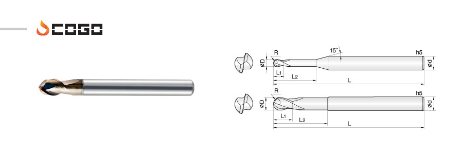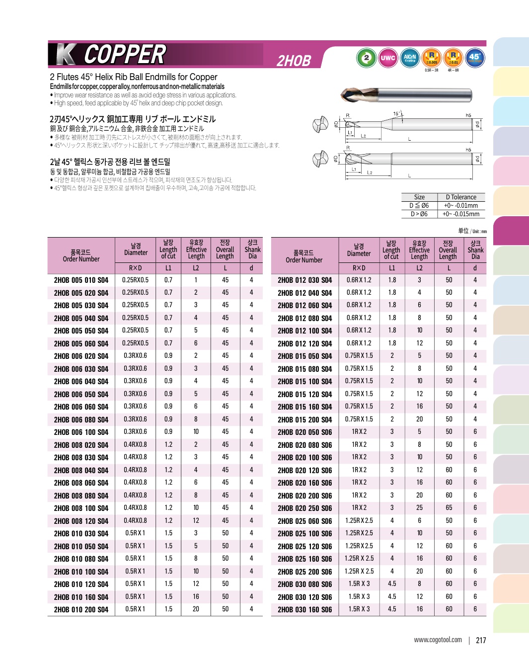 2 Flutes 45° Helix Rib Ball Endmills for Copper