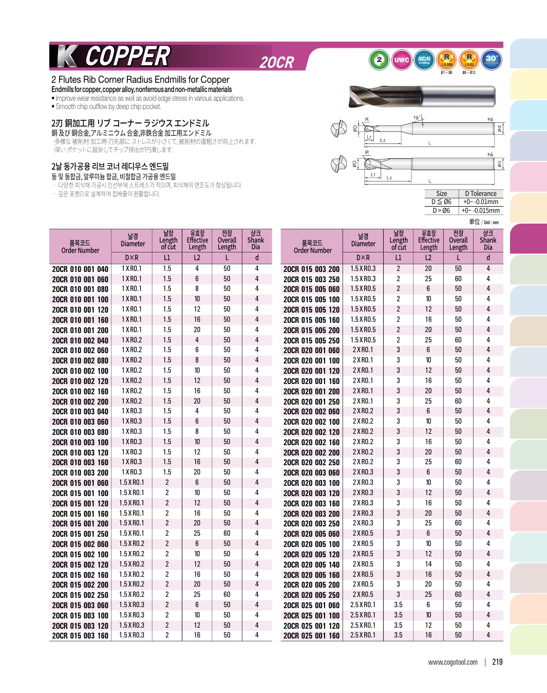- - Endmills for copper, copper alloy, nonferrous and non-metallic materials