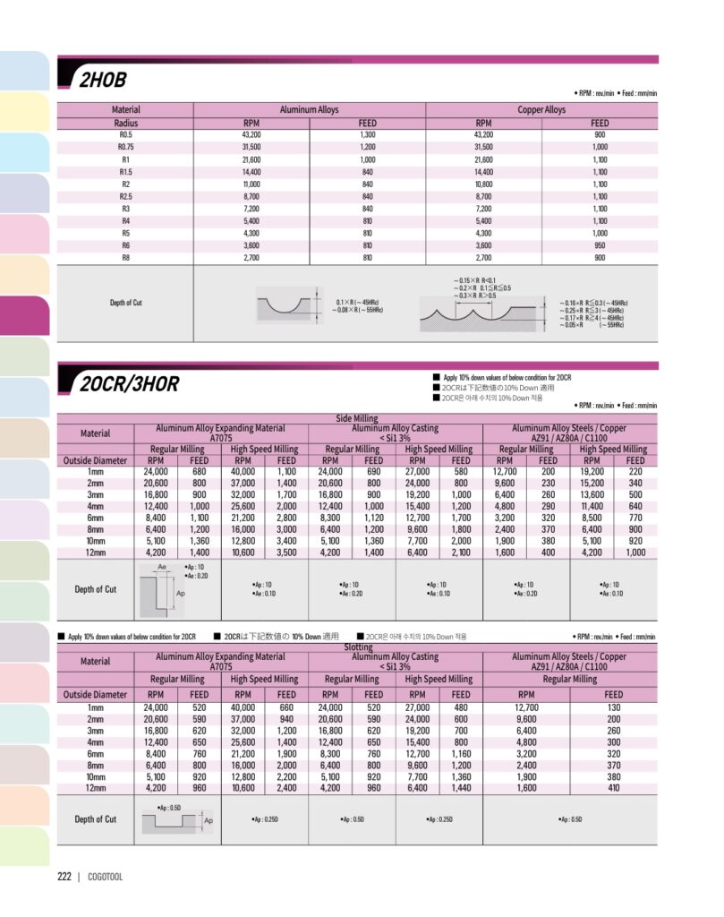 - - High speed, feed applicable by 45˚ helix and deep chip pocket design.