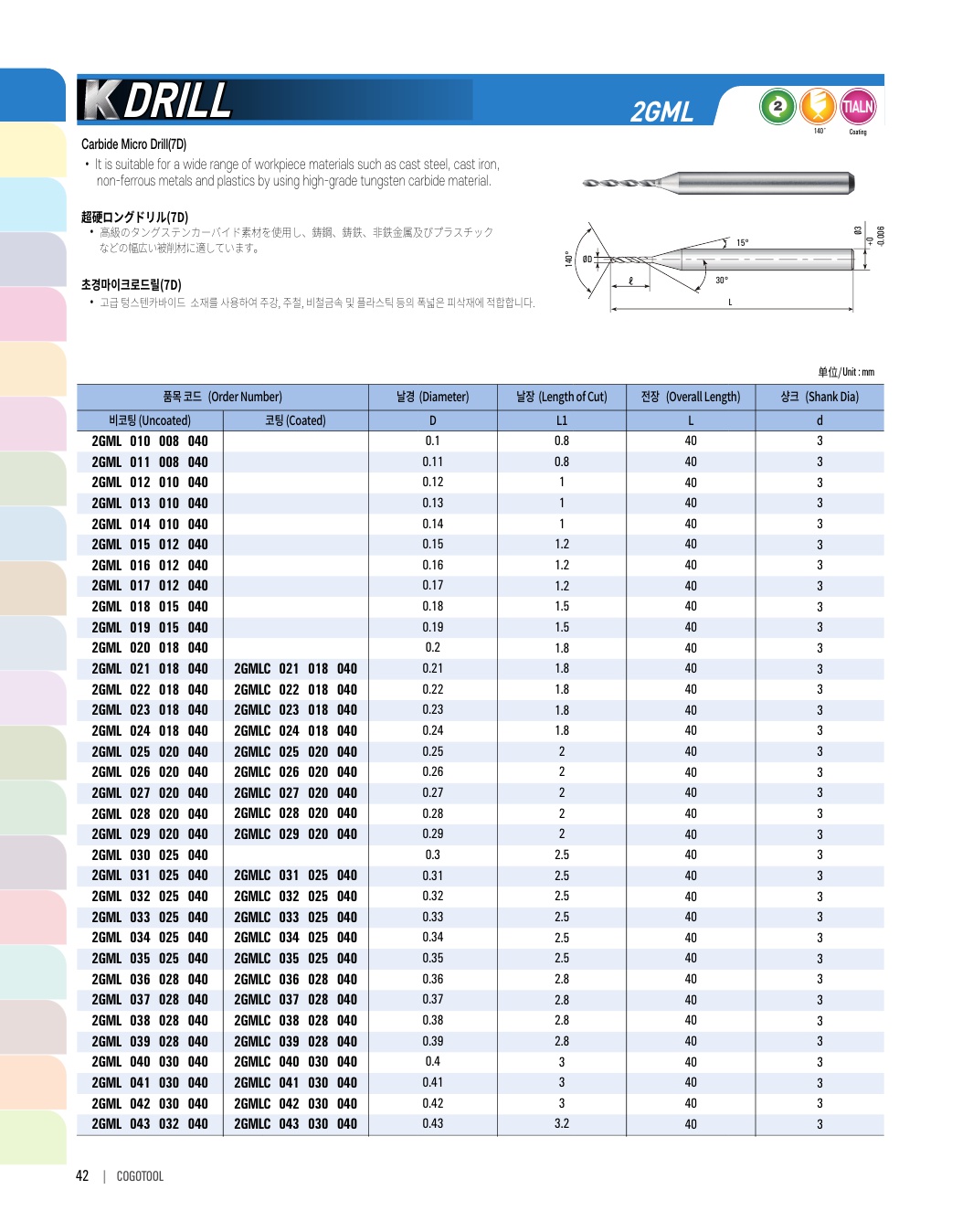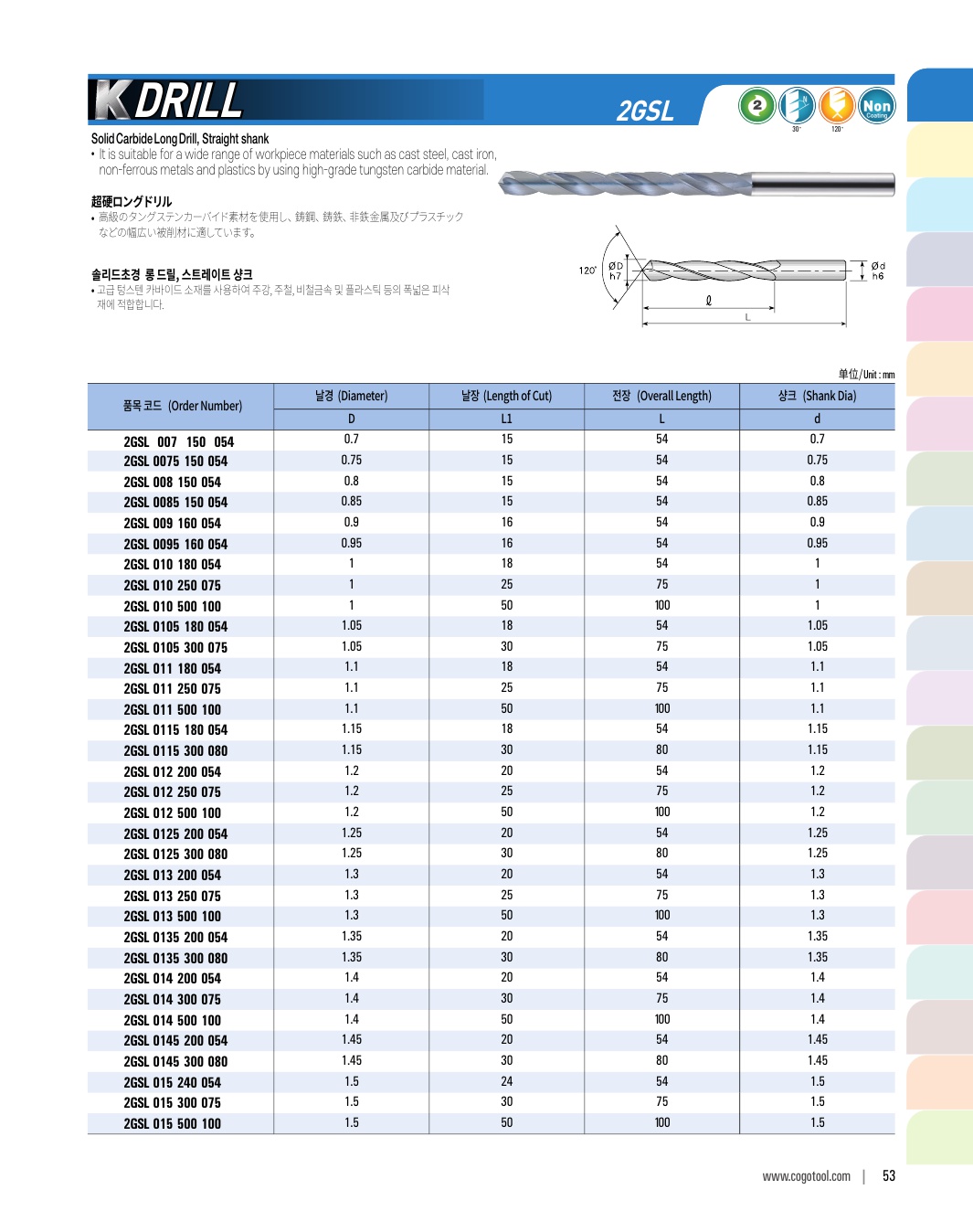 K-DRILL provides optimal performance for processing automobile parts such as S45C, SCM, cast steel, and cast iron. There are carbide drill, long drill, flat drill and flat long drill types.