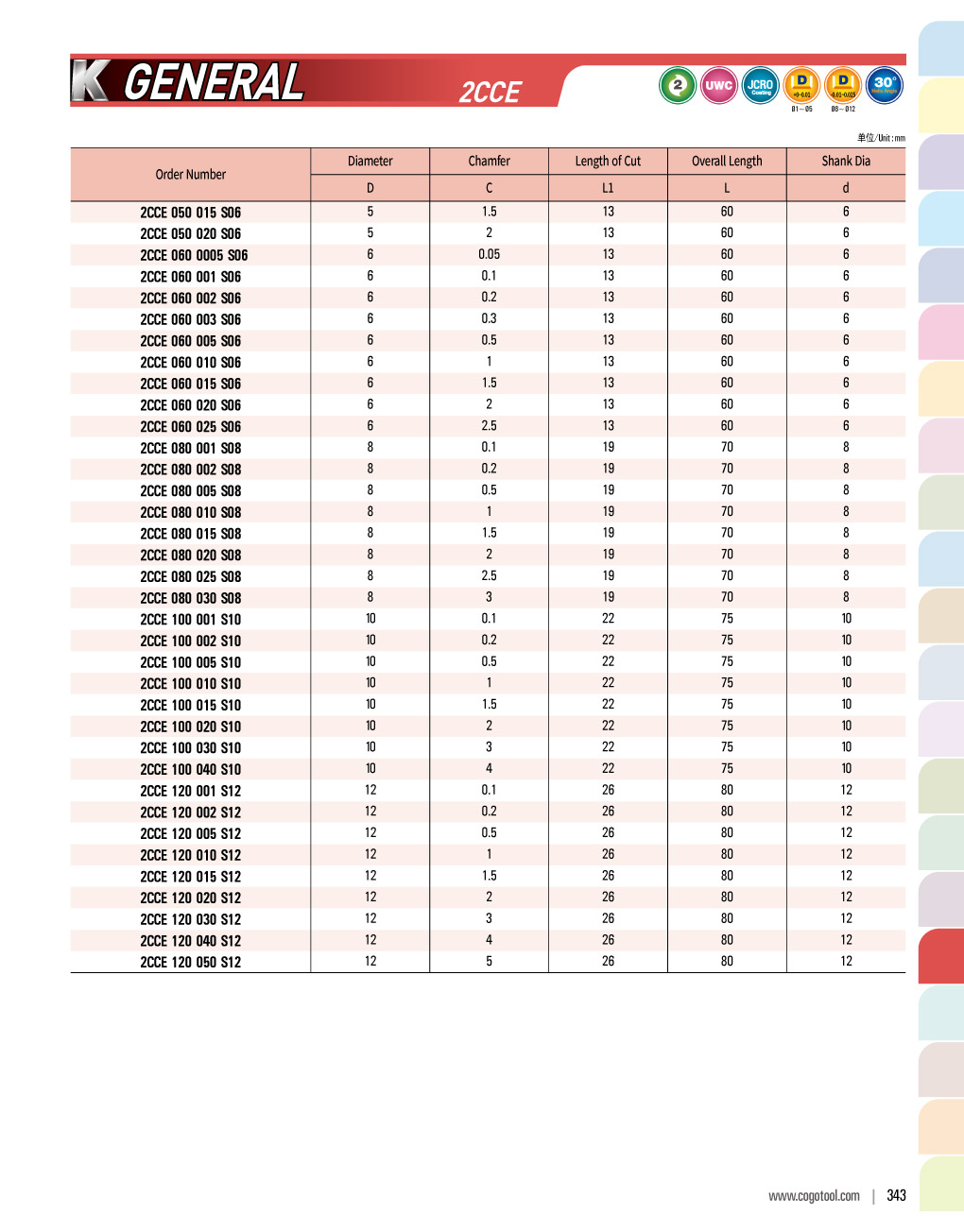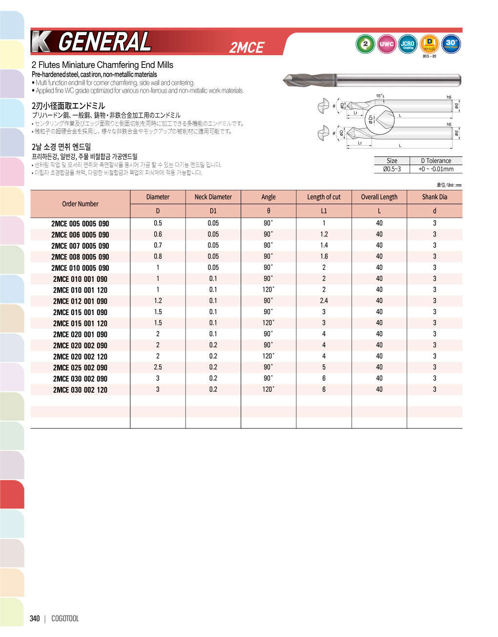 - - Optimum for NC engraving, chamfering and centering with straight 2flutes.