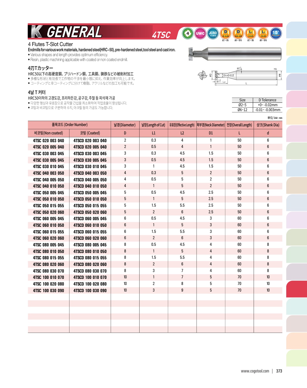 - - 인성과 내마모성이 우수한 초미립자 고급재질을 사용하여 공구의 수명을 향상하여 무인작업이 가능
