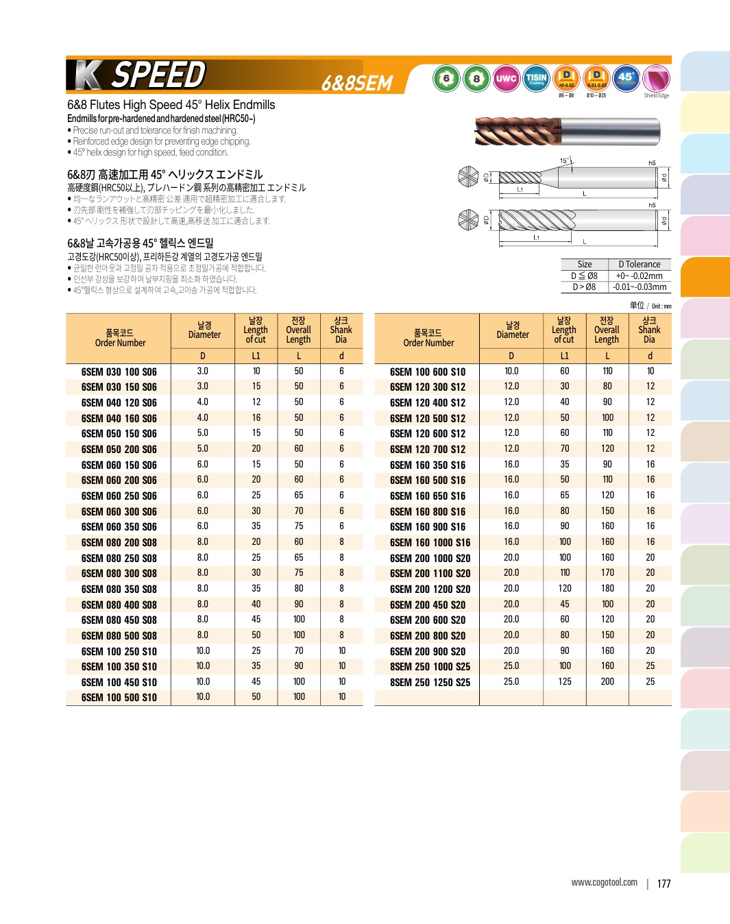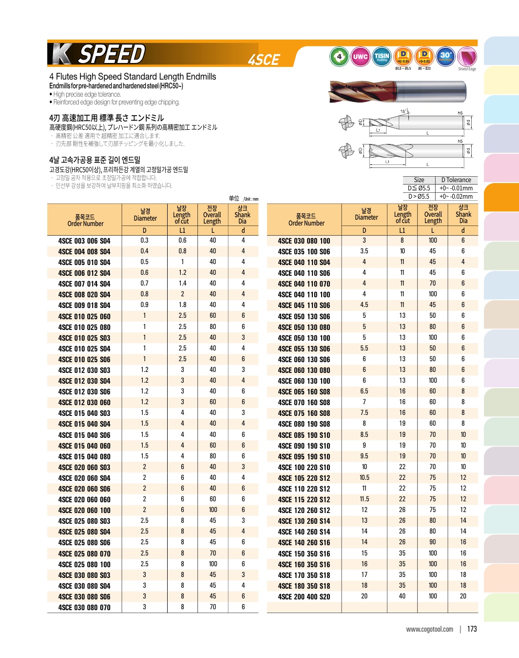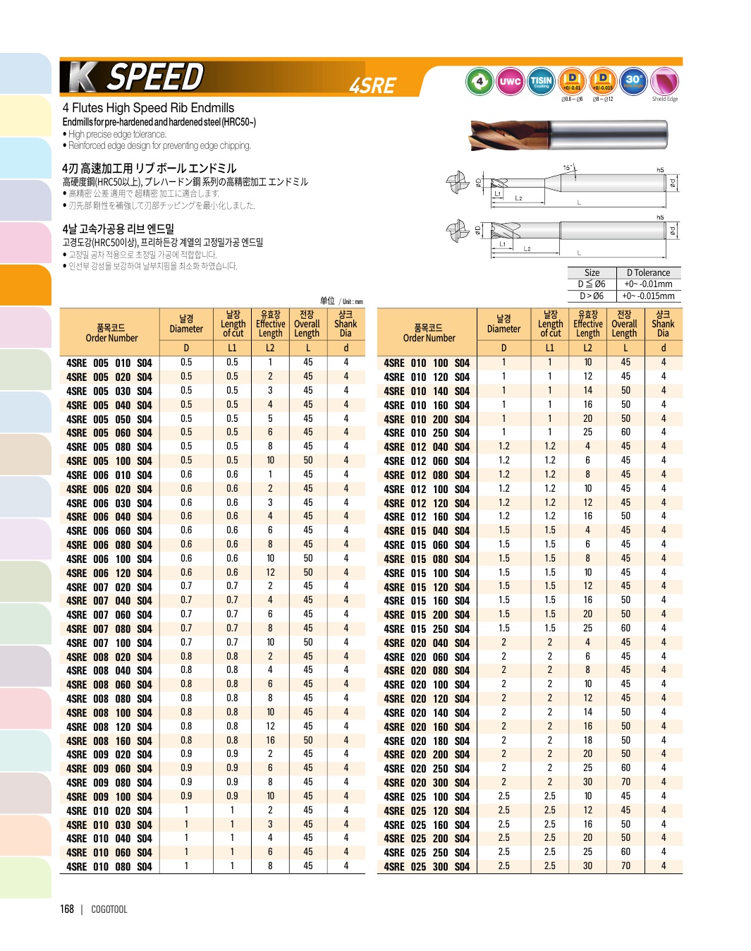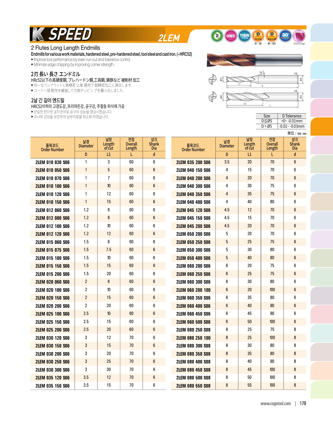 - - Endmills for precise cutting (±2㎛) of pre-hardened steel (HRC50~62)