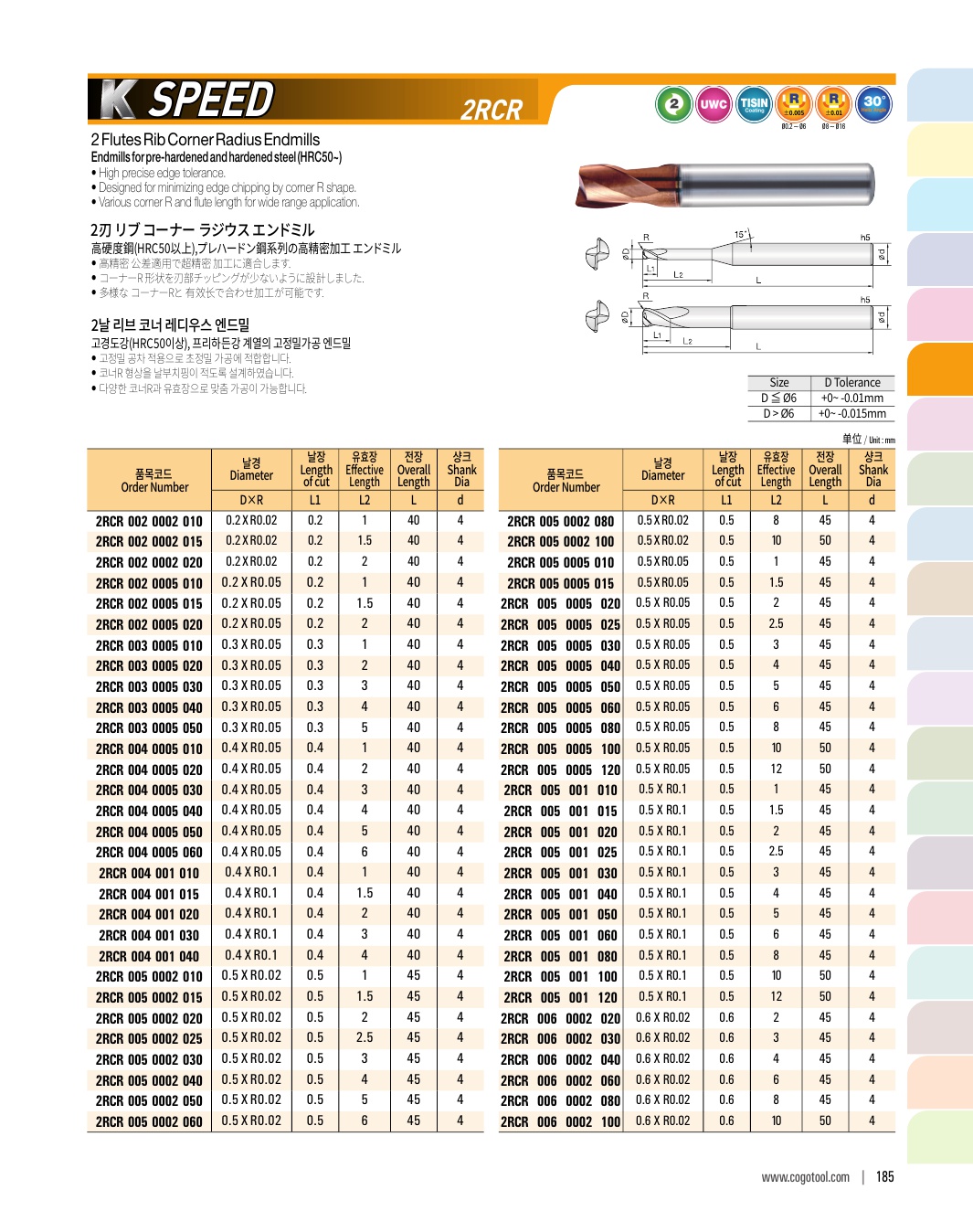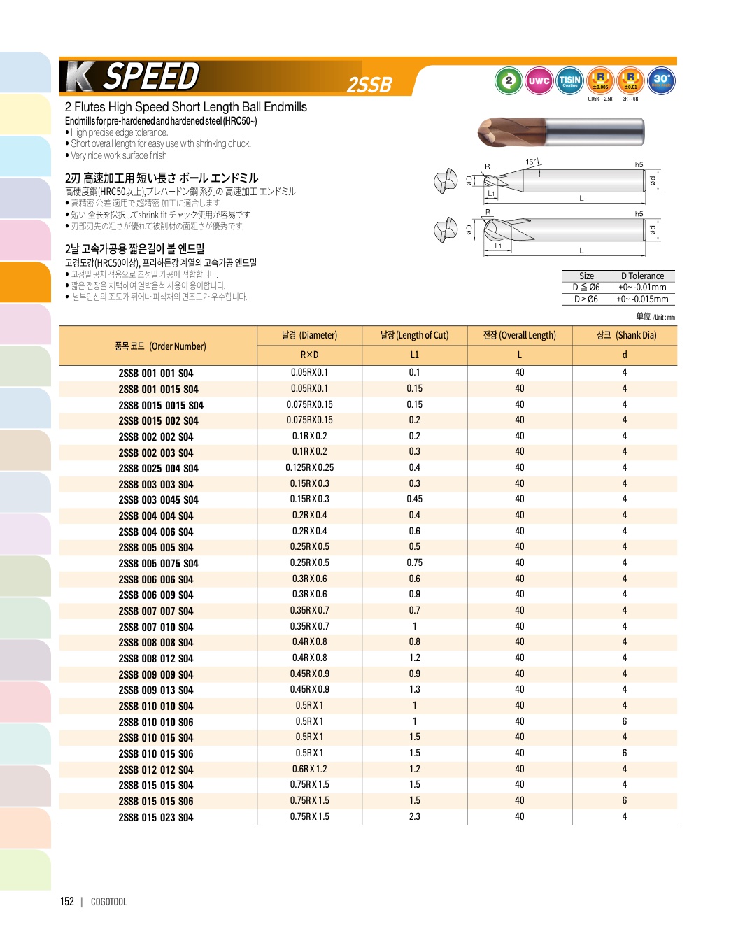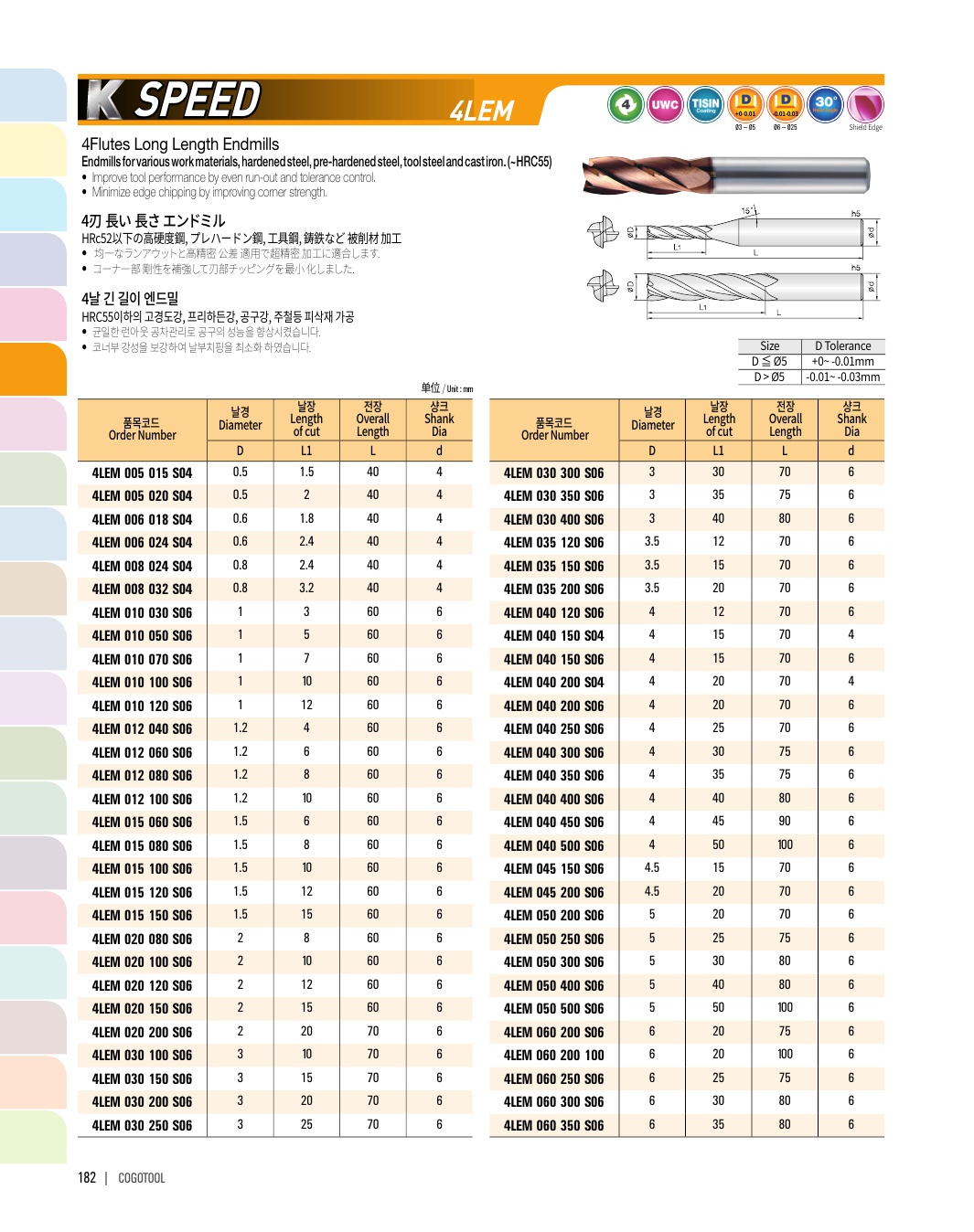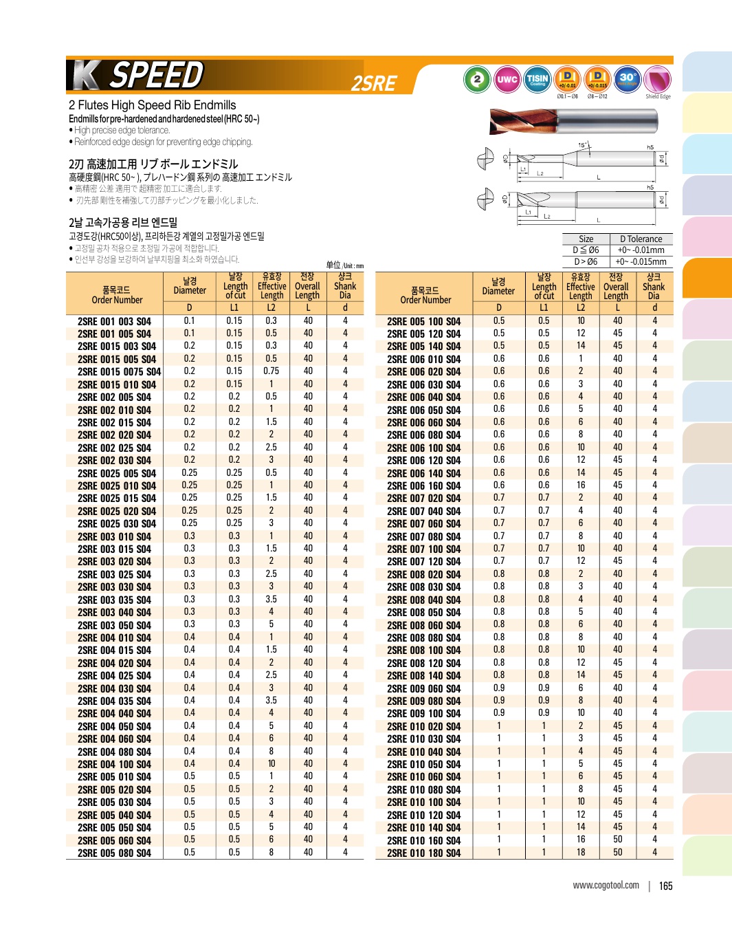 - - Endmills for precise cutting (±2㎛) of pre-hardened steel (HRC50~62)