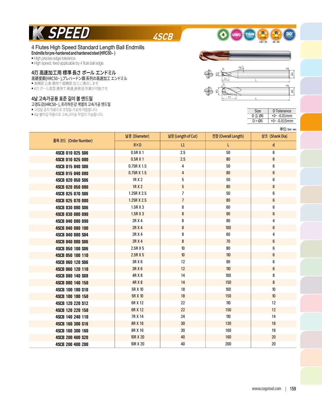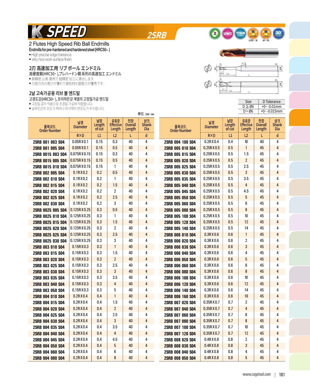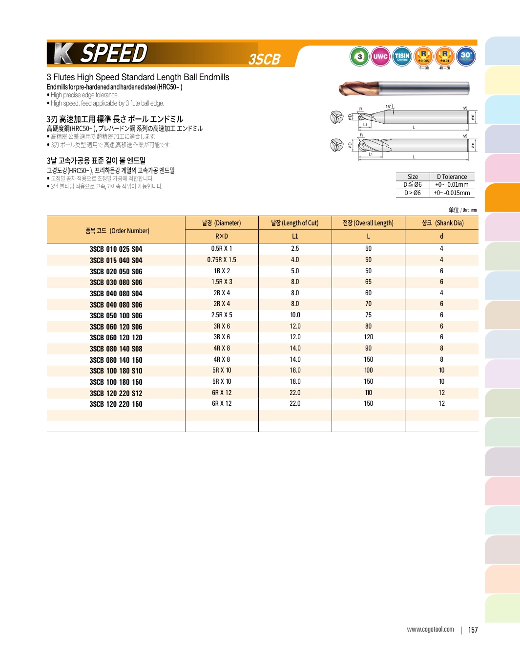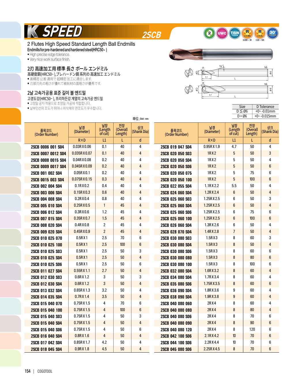 - - Endmills for precise cutting (±2㎛) of pre-hardened steel (HRC50~62)