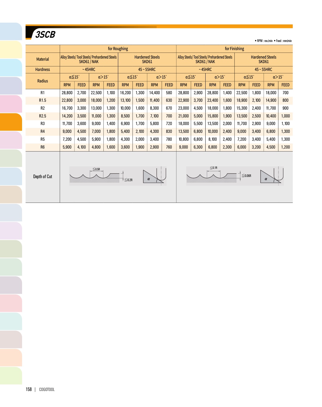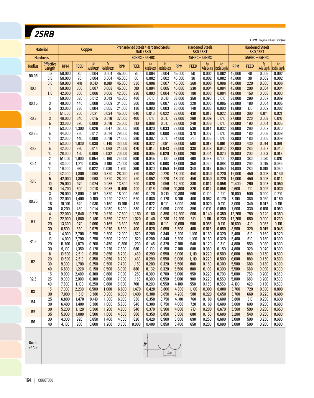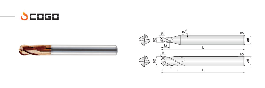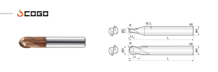 - - High speed, feed applicable by flute ball edge.