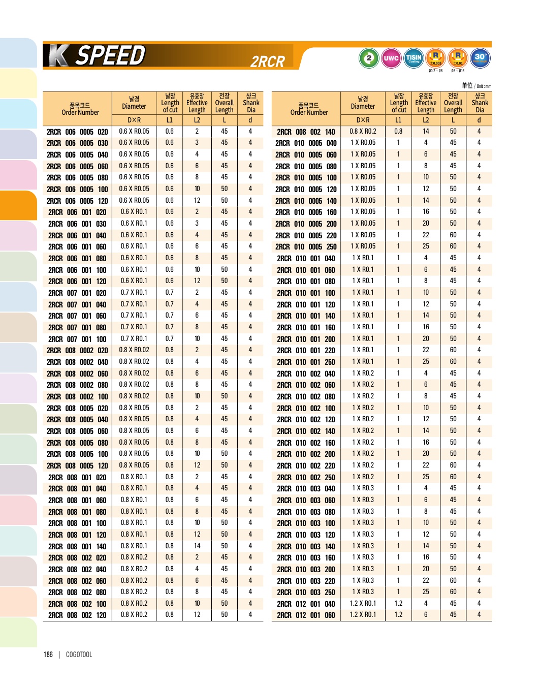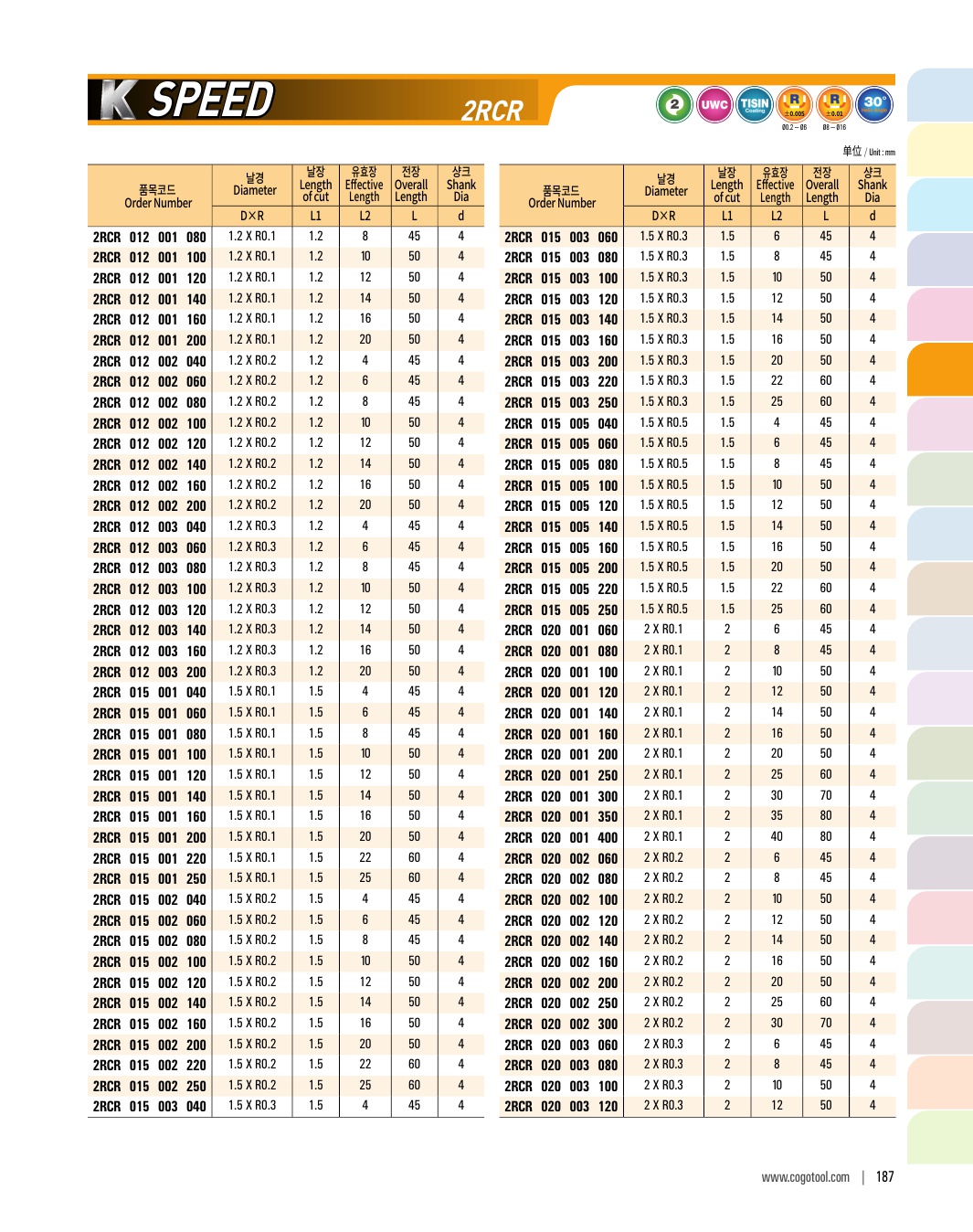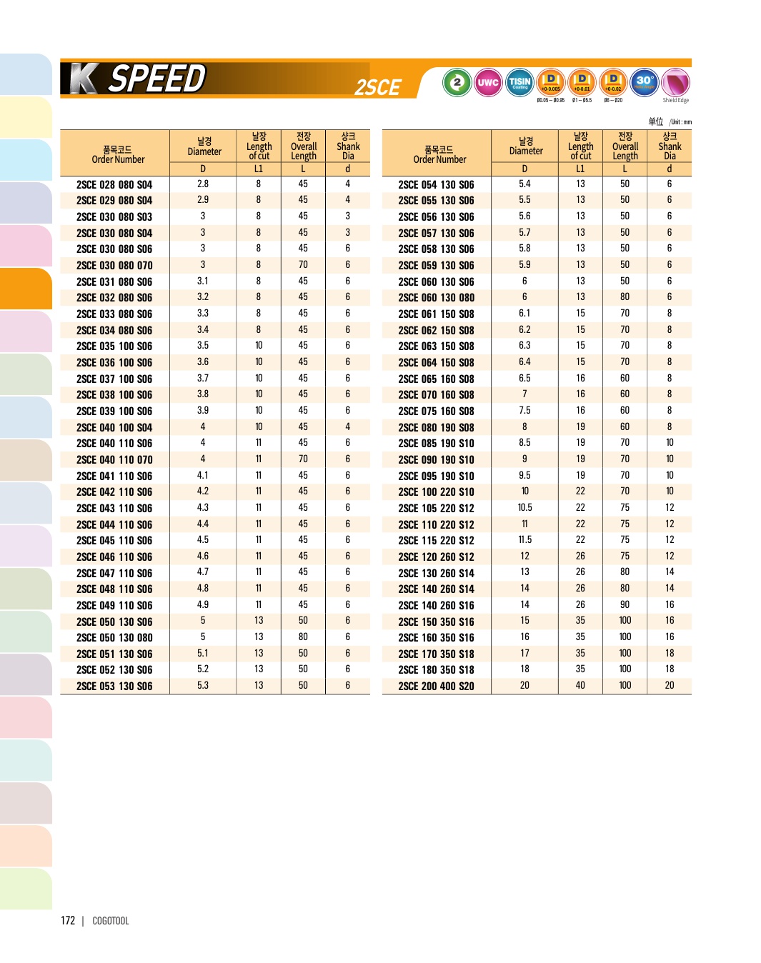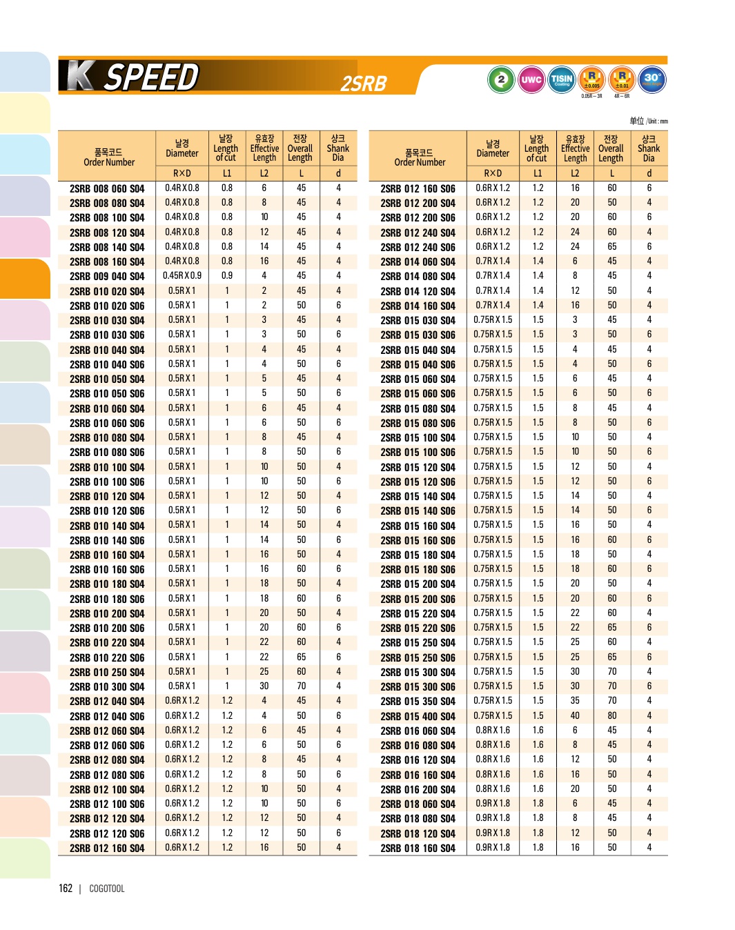 - - 인성과 내마모성이 우수한 초미립자 고급재질을 사용하여 공구의 수명을 향상하여 무인작업이 가능