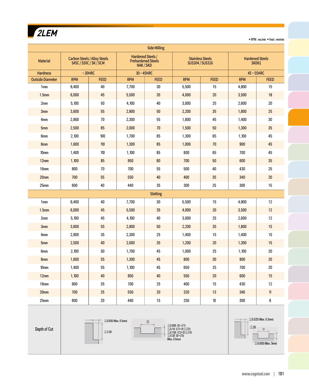 - - Endmills for various work materials, hardened steel, pre-hardened steel, tool steel and cast iron. (~HRC52)
