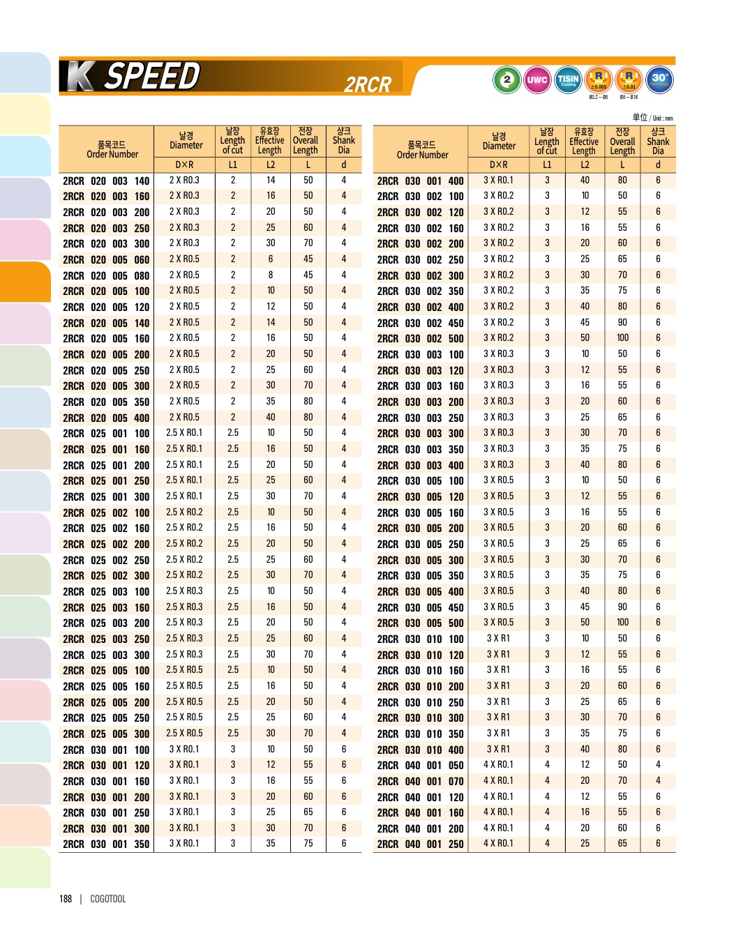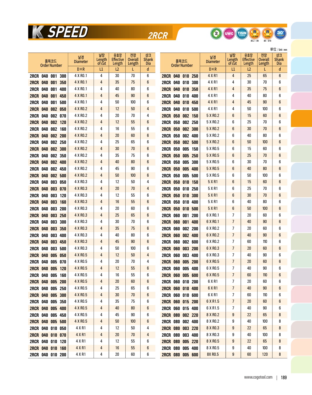 - - Various corner R and flute length for wide range application.