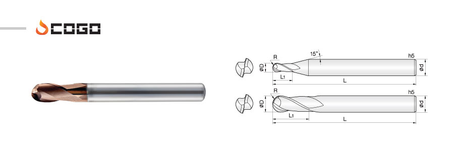 2 Flutes Spherical Endmills for 3D Cut 230°