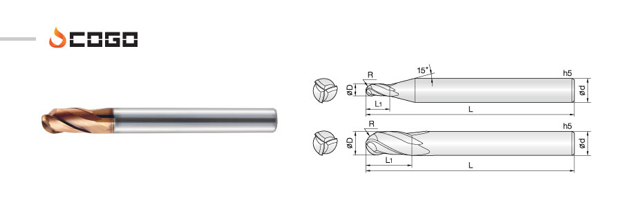 4 Flutes Spherical Endmills for 3D Cut 270°