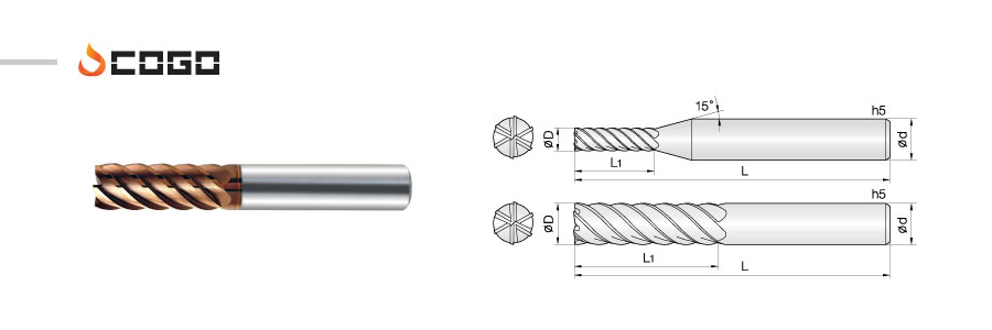 - - Long tool life with low cutting force by 45˚ helix design.