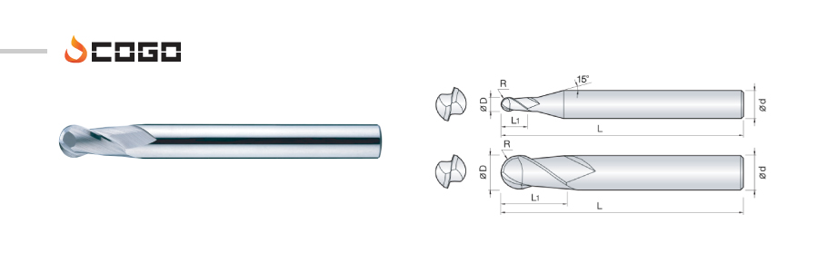 2날 5축 3D 230도 가공용 구형 엔드밀