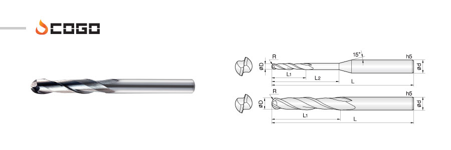 2날 ABS수지 가공용 마이크로 롱 볼 엔드밀