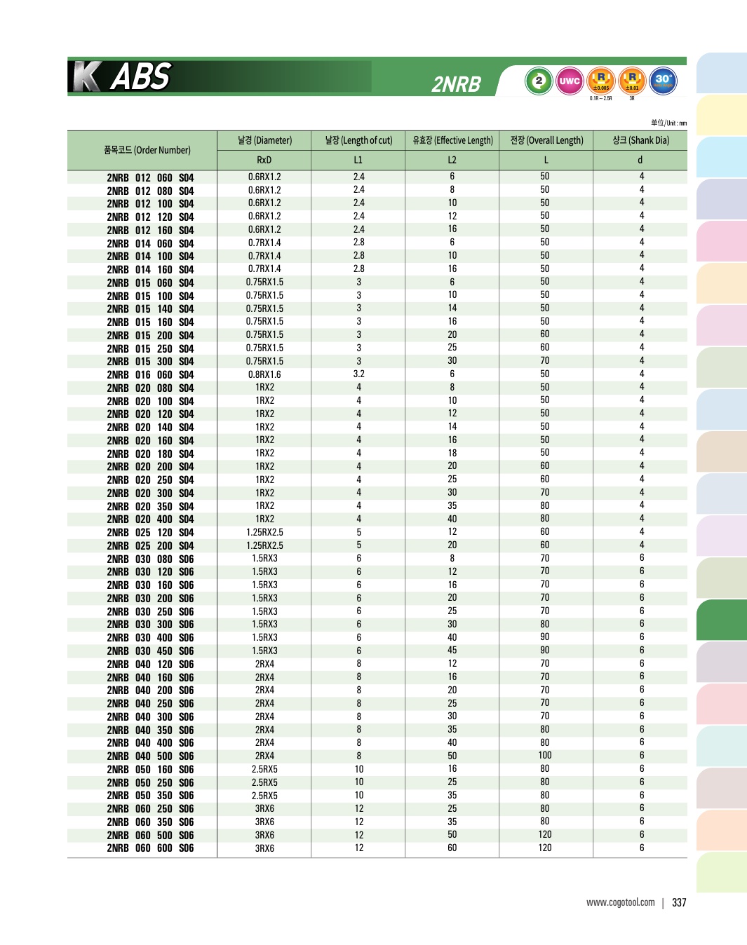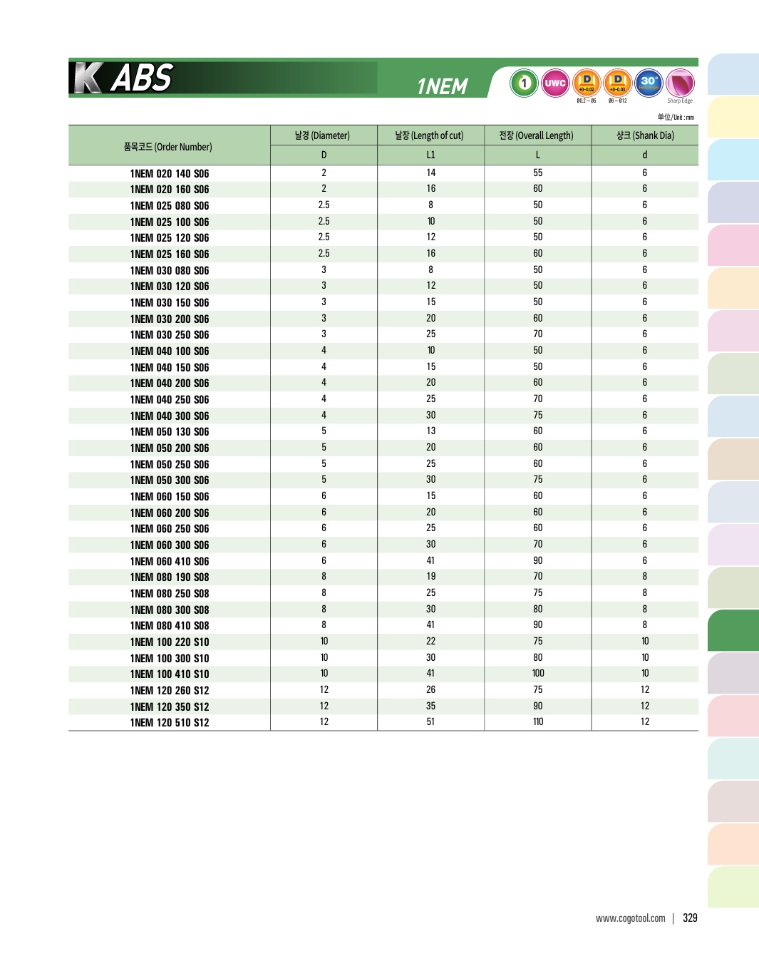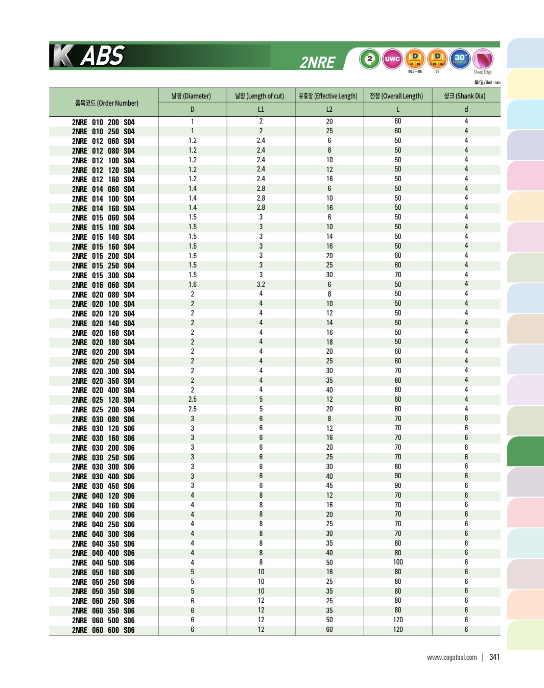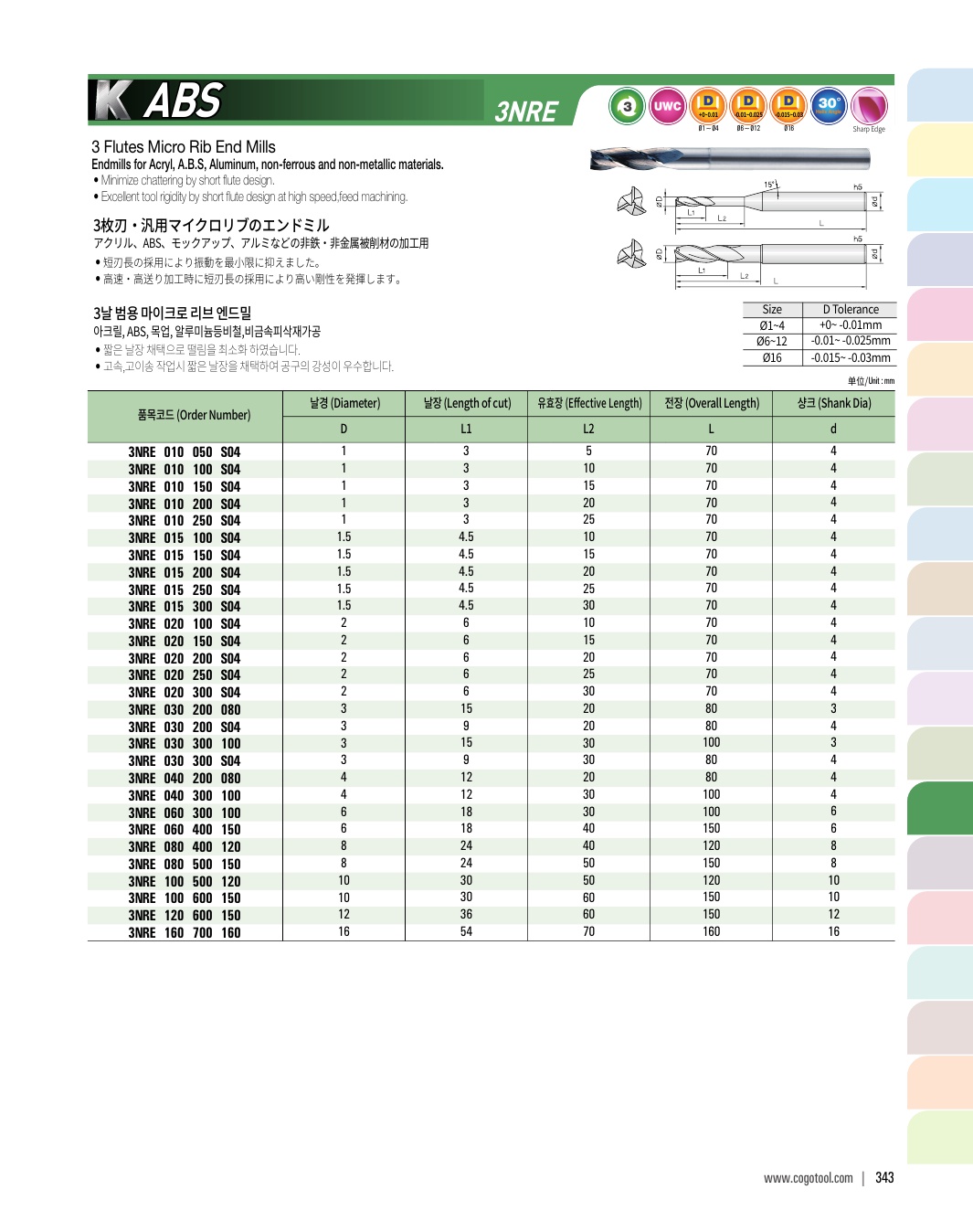 K-ABS는 아크릴, ABS, 목업, 알루미늄 등 비철, 비금속 피삭재 전용 엔드밀입니다.