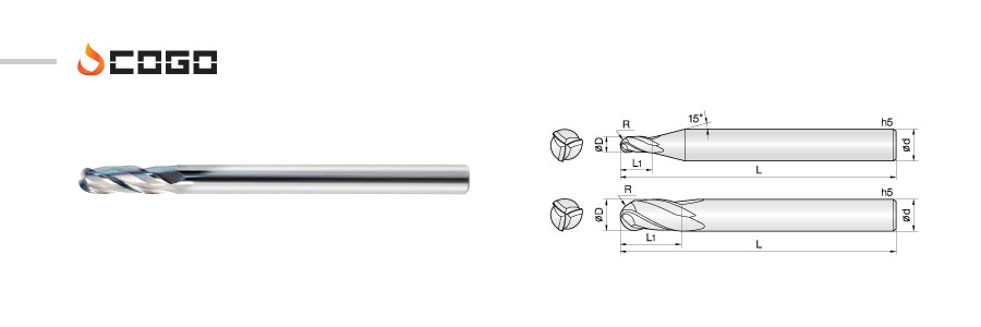 4날 45˚헬릭스 코너 레디우스 롱 엔드밀