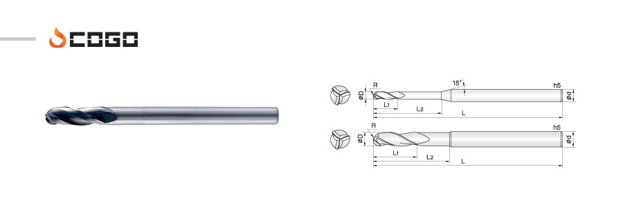 4날 5축 3D 230도 가공용 구형 엔드밀