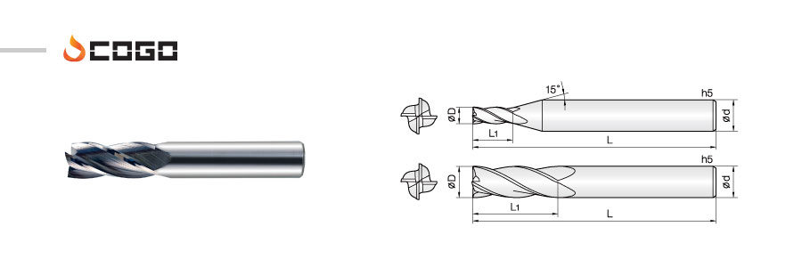 3&4날 45° 헬릭스 파인피치형 라핑 엔드밀