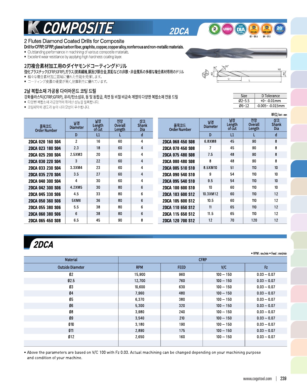 - - 강화플라스틱(CFRP,GFRP), 유리/탄소섬유, 동 및 동합급, 흑연 등 비철 비금속 계열의 다양한 복합소재 전용 드릴