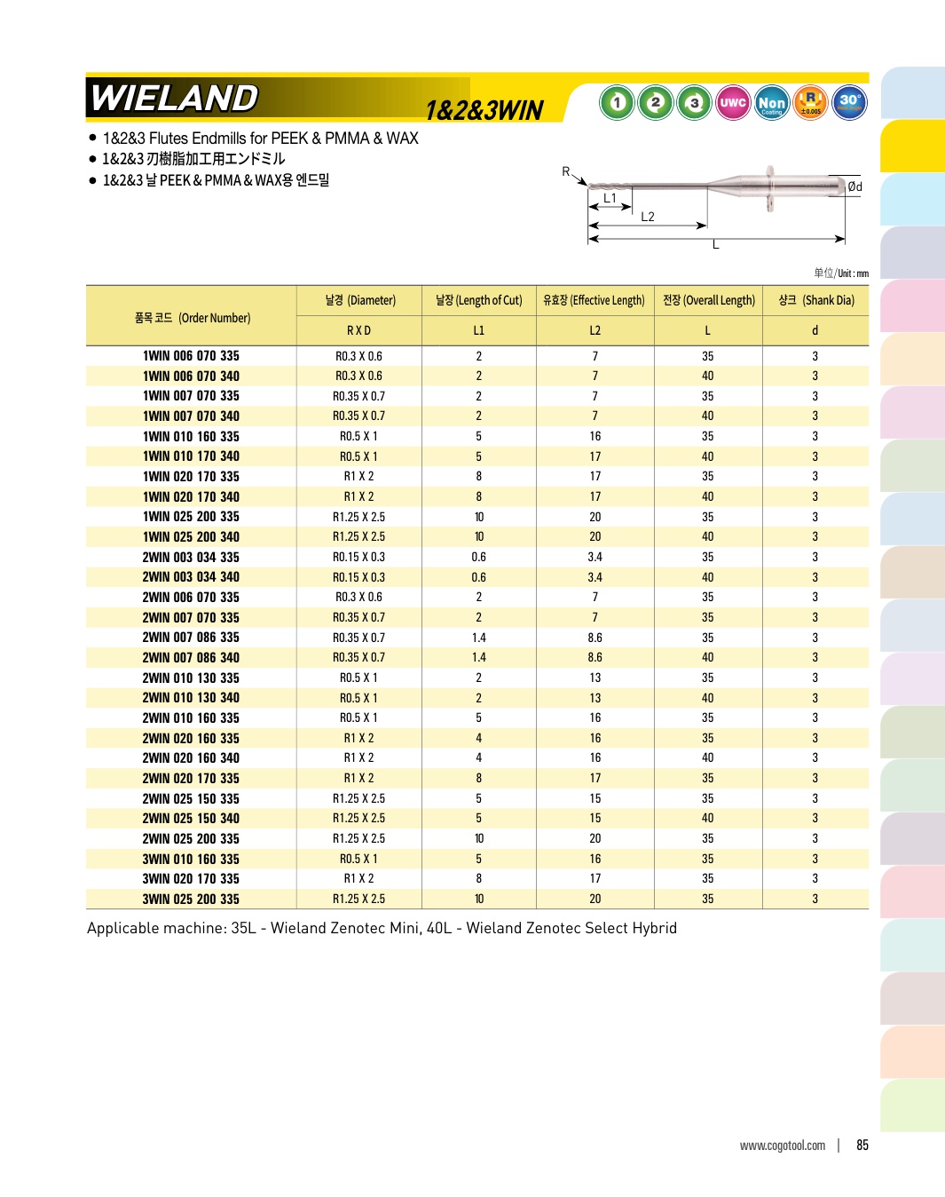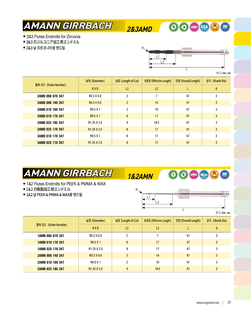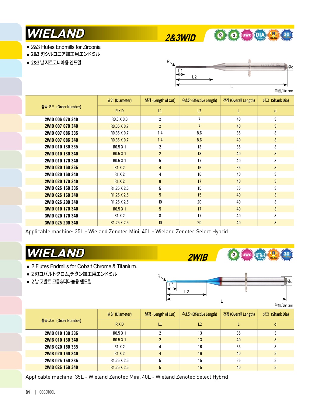 2&3 날 지르코니아용 엔드밀