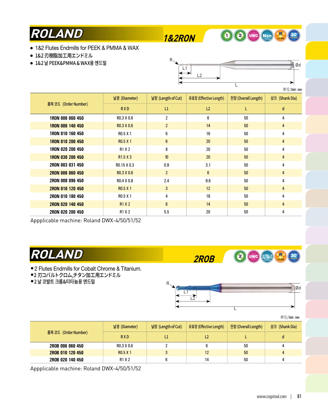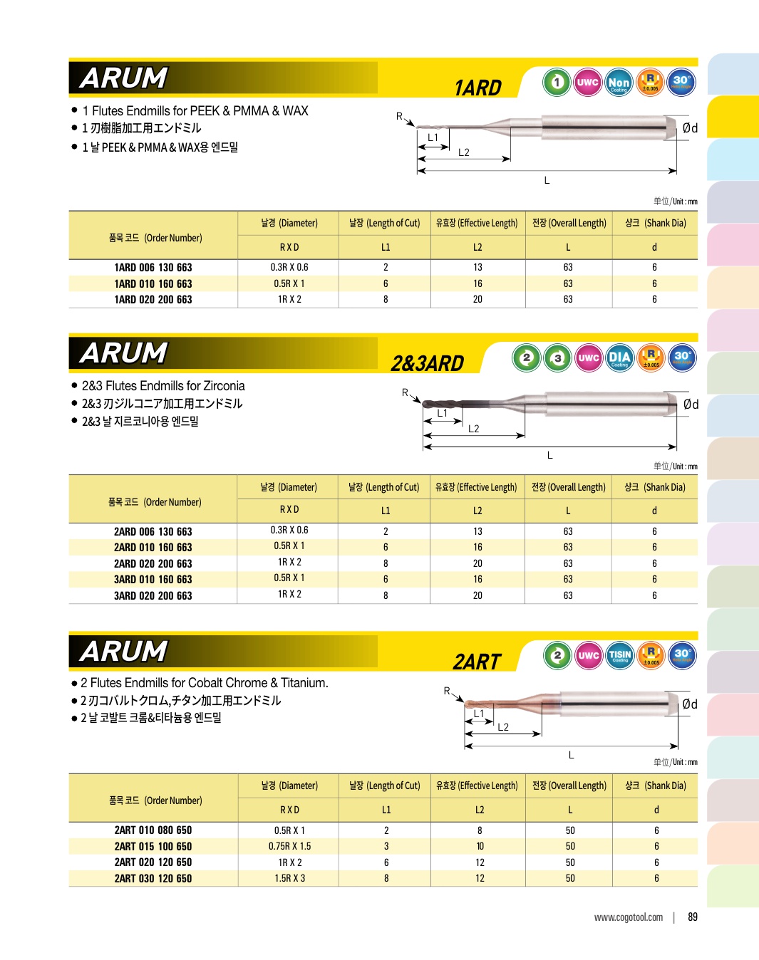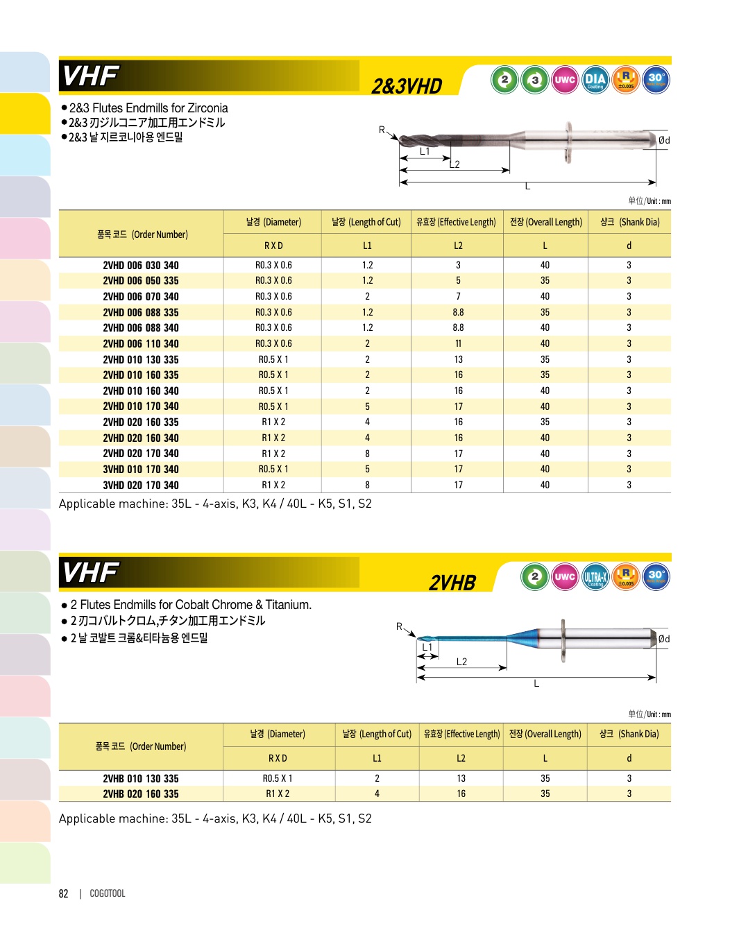 2 날 코발트 크롬&티타늄용 엔드밀