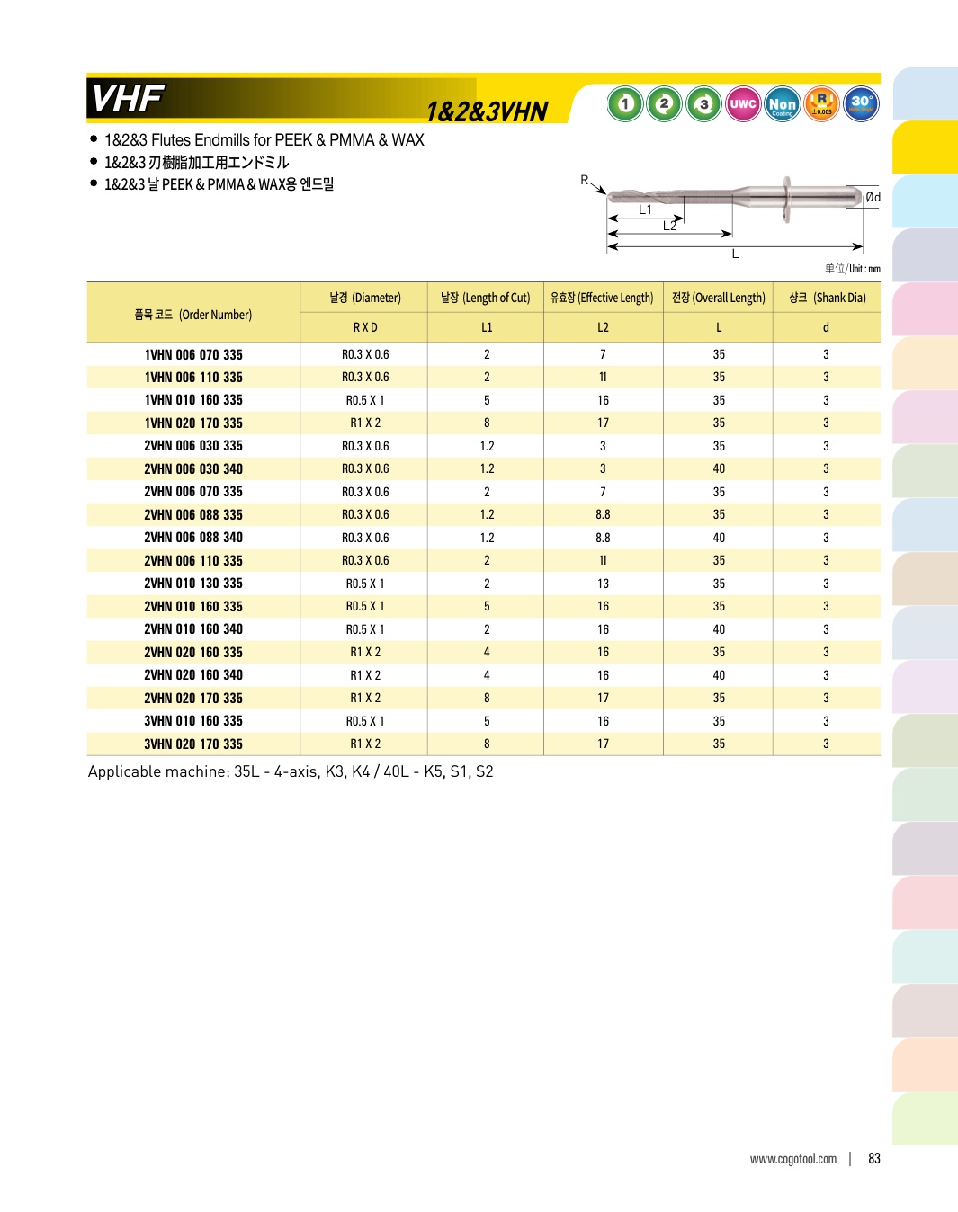 1 날 PEEK & PMMA & WAX용 엔드밀