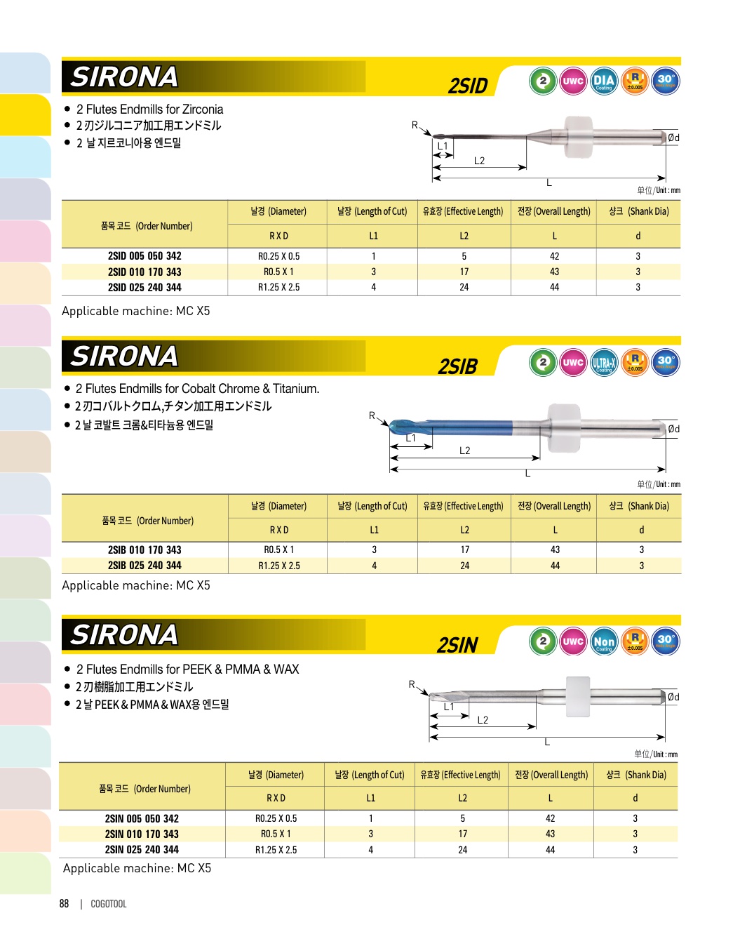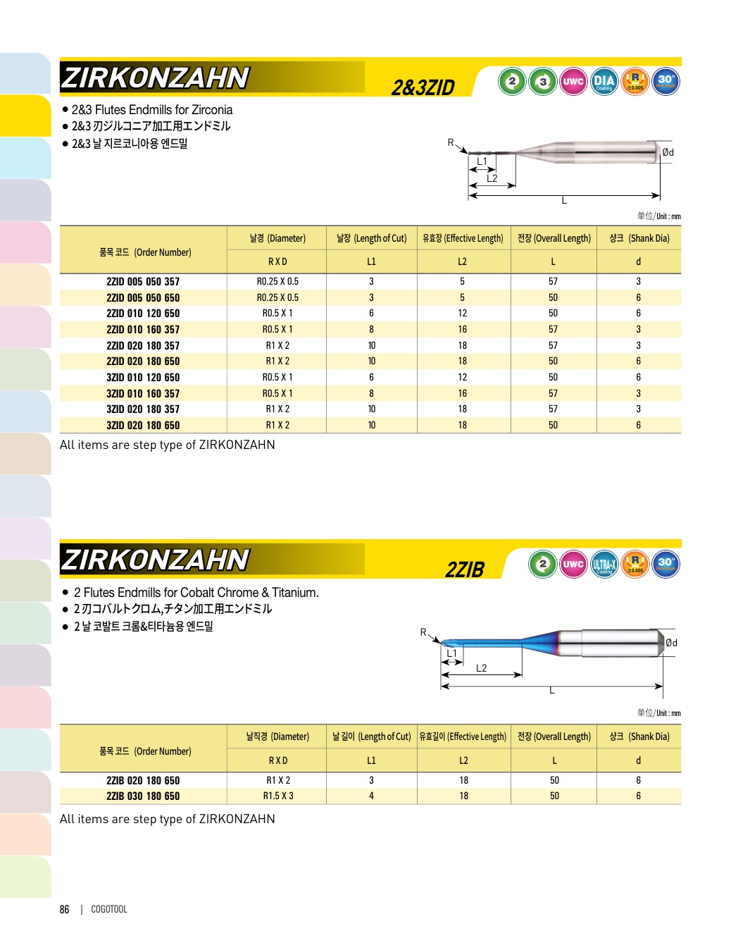 2 날 지르코니아용 엔드밀