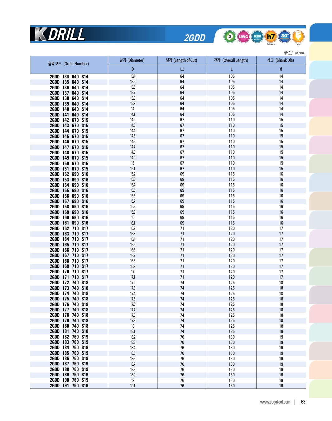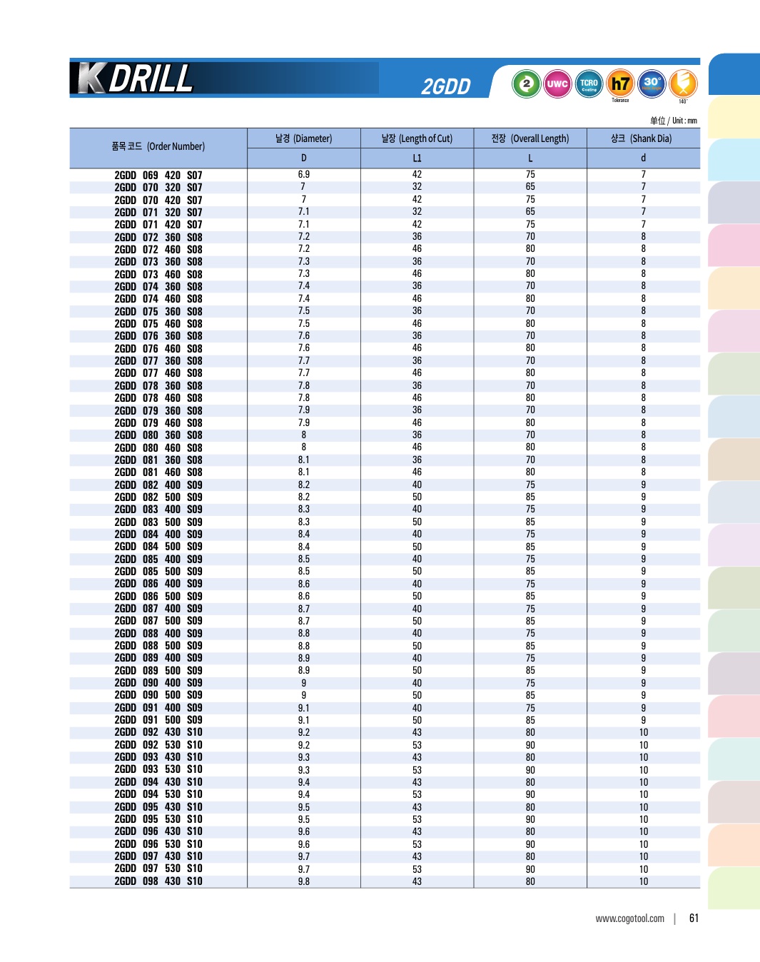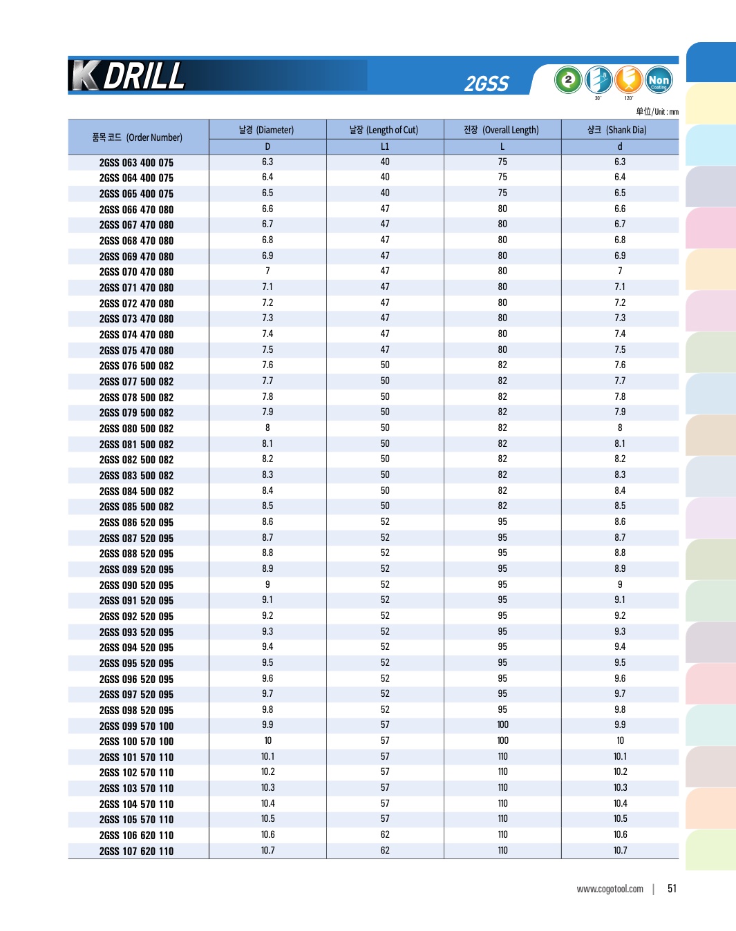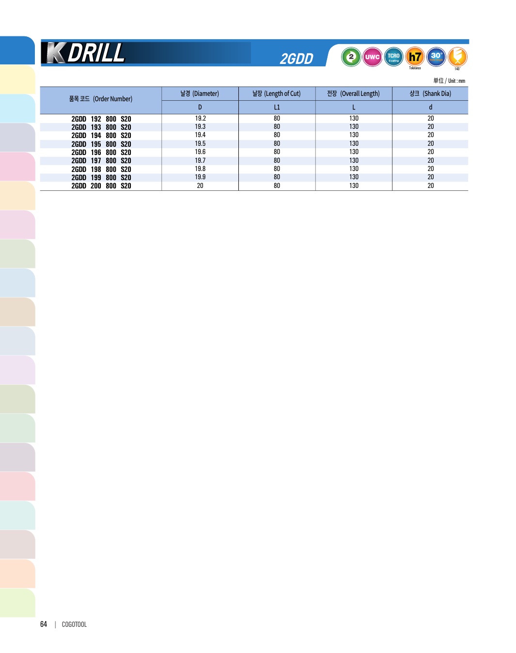 K-DRILL은 S45C, SCM, 주강, 주철 등의 자동차 부품가공에 최적의 성능을 발휘합니다. 타입별로 초경드릴, 초경 롱 드릴, 초경 플랫 드릴, 초경 플랫 롱드릴 타입이 있습니다