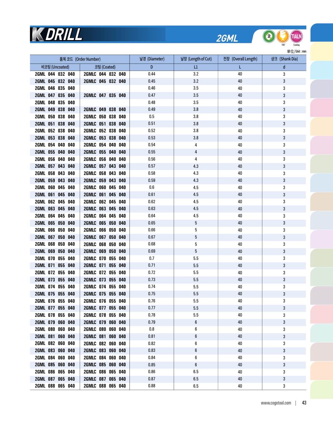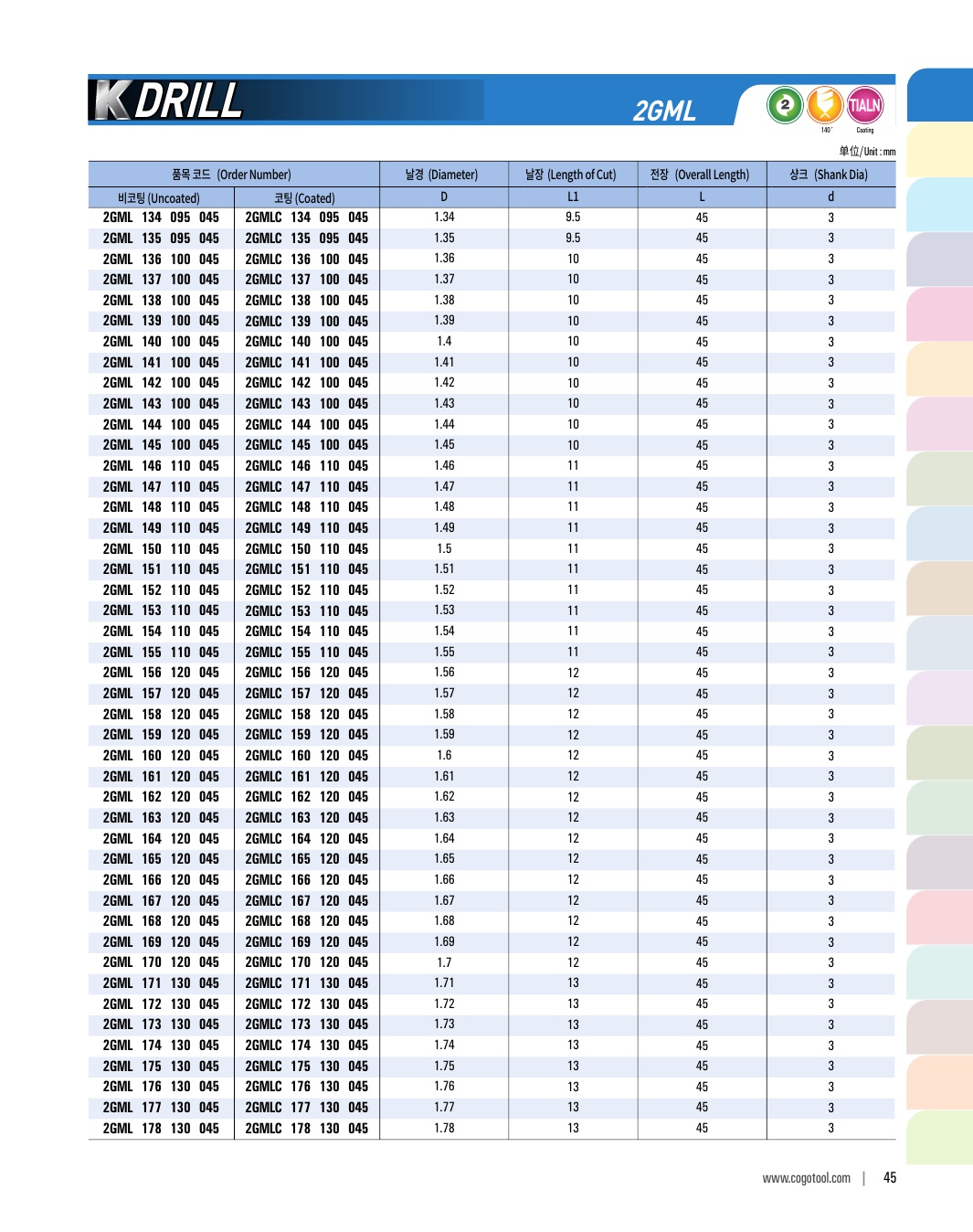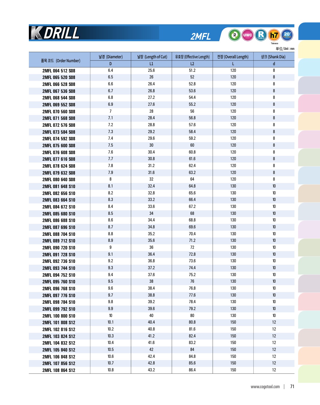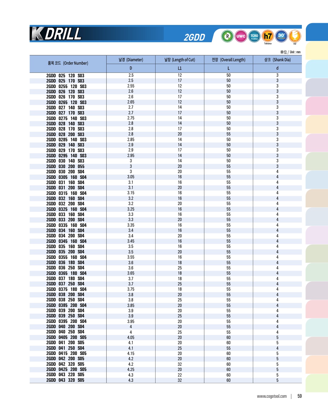 K-DRILL은 S45C, SCM, 주강, 주철 등의 자동차 부품가공에 최적의 성능을 발휘합니다. 타입별로 초경드릴, 초경 롱 드릴, 초경 플랫 드릴, 초경 플랫 롱드릴 타입이 있습니다