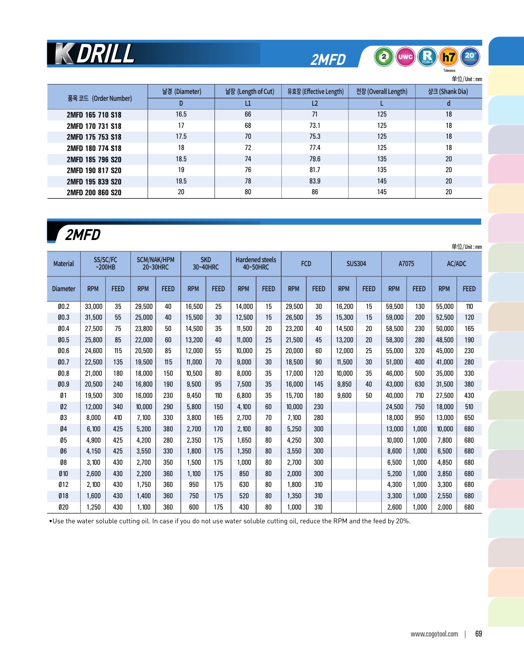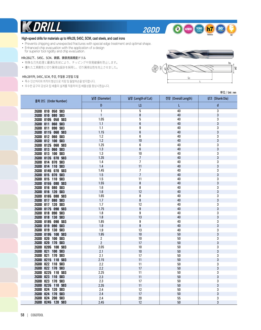 HRC 28이하, S45C, SCM, 주강, 주철용 드릴