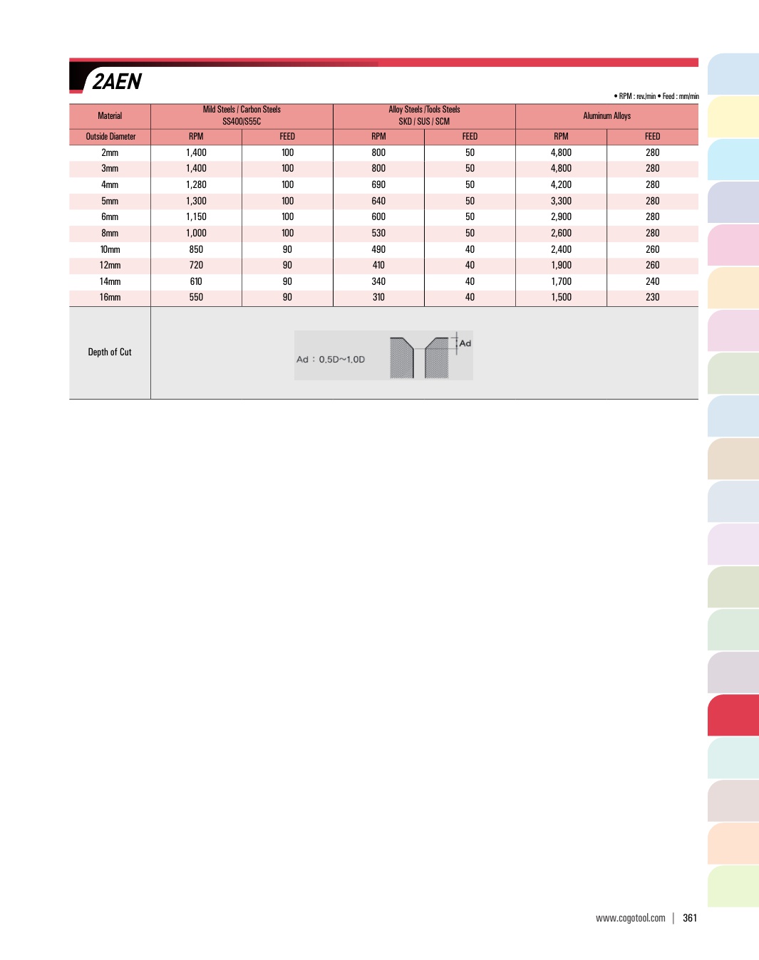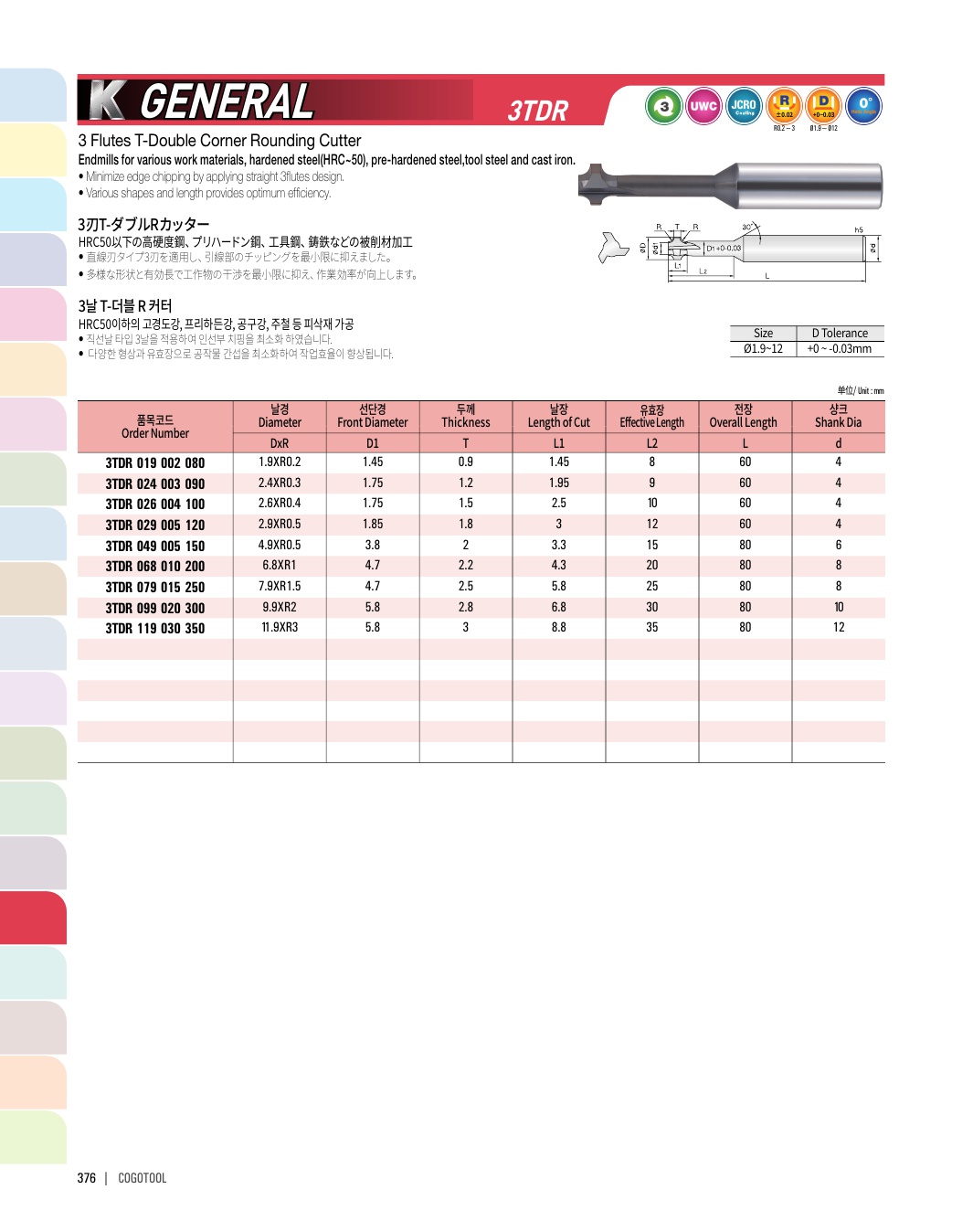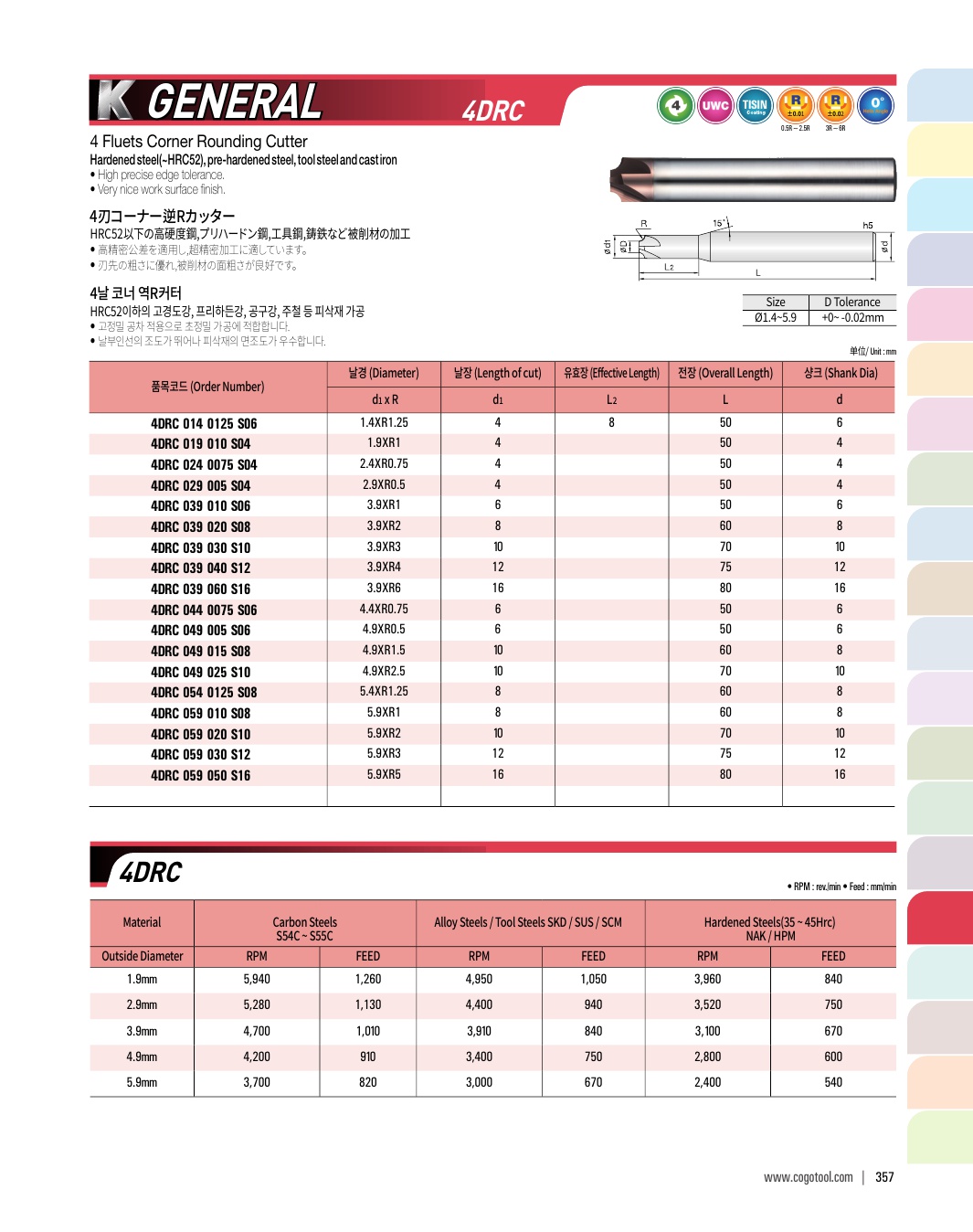 - - 미립자 초경합금을 채택, 다양한 비철합금과 목업의 피삭재에 적용 가능합니다.