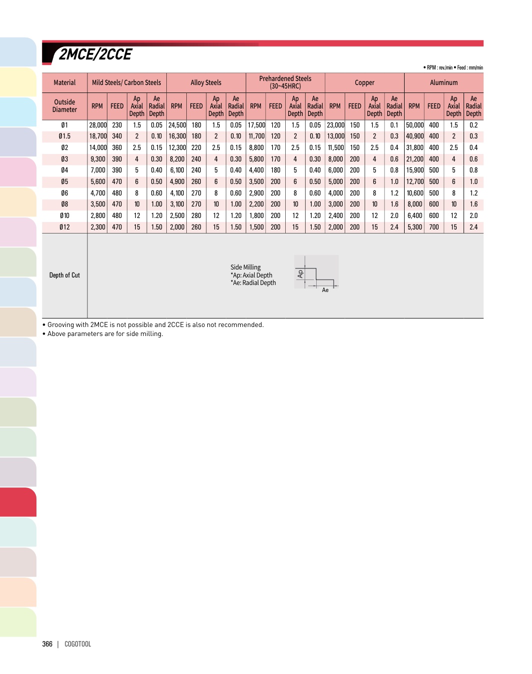 - - HRC50이하의 고경도강, 프리하든강, 공구강, 주철 등 피삭재 가공