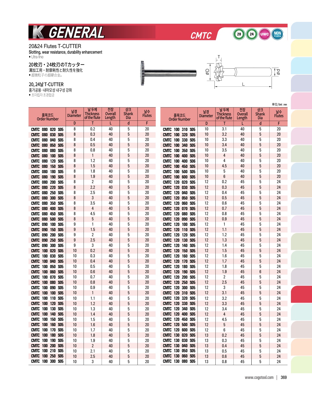 - - 다양한 형상과 유효장으로 공작물 간섭을 최소화하여 작업효율이 향상됩니다.
