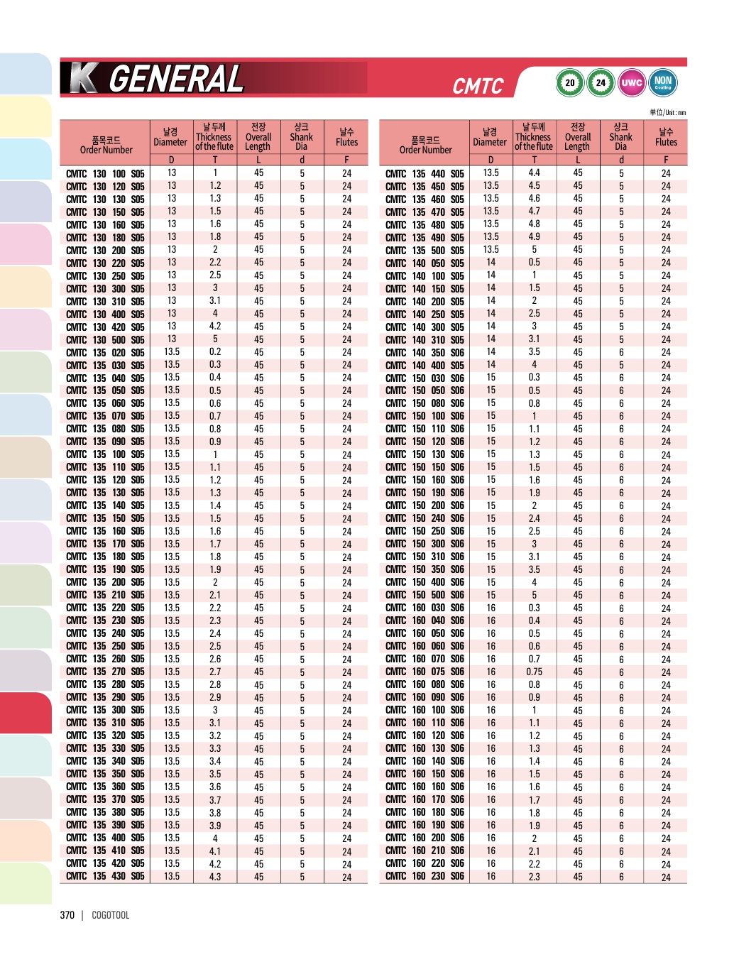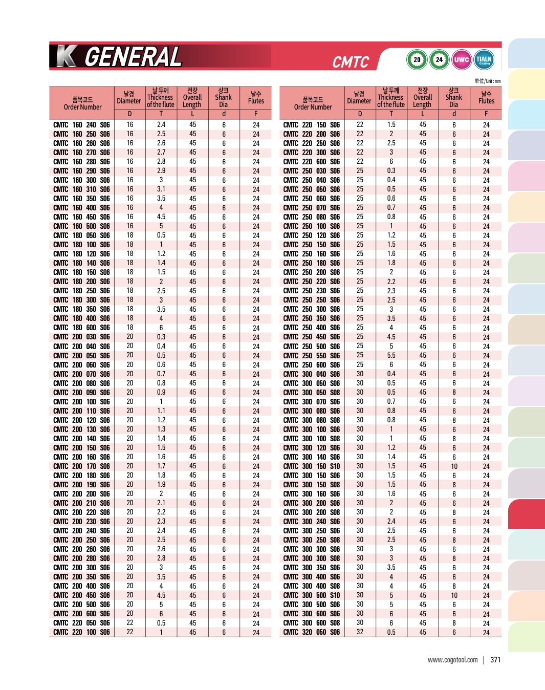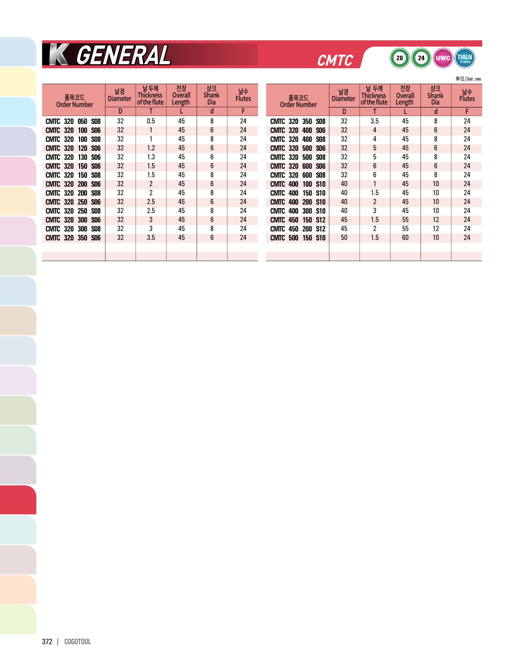 - - 코 팅: 프리하든강, 일반강, 주물 비철합금 가공 엔드밀